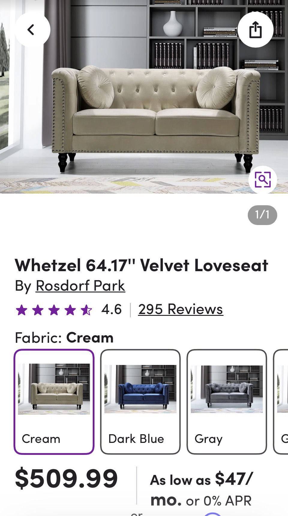 Was used for staging only Sold as is includes everything in the picture, including pillows Whetzel 64.17" Velvet Loveseat