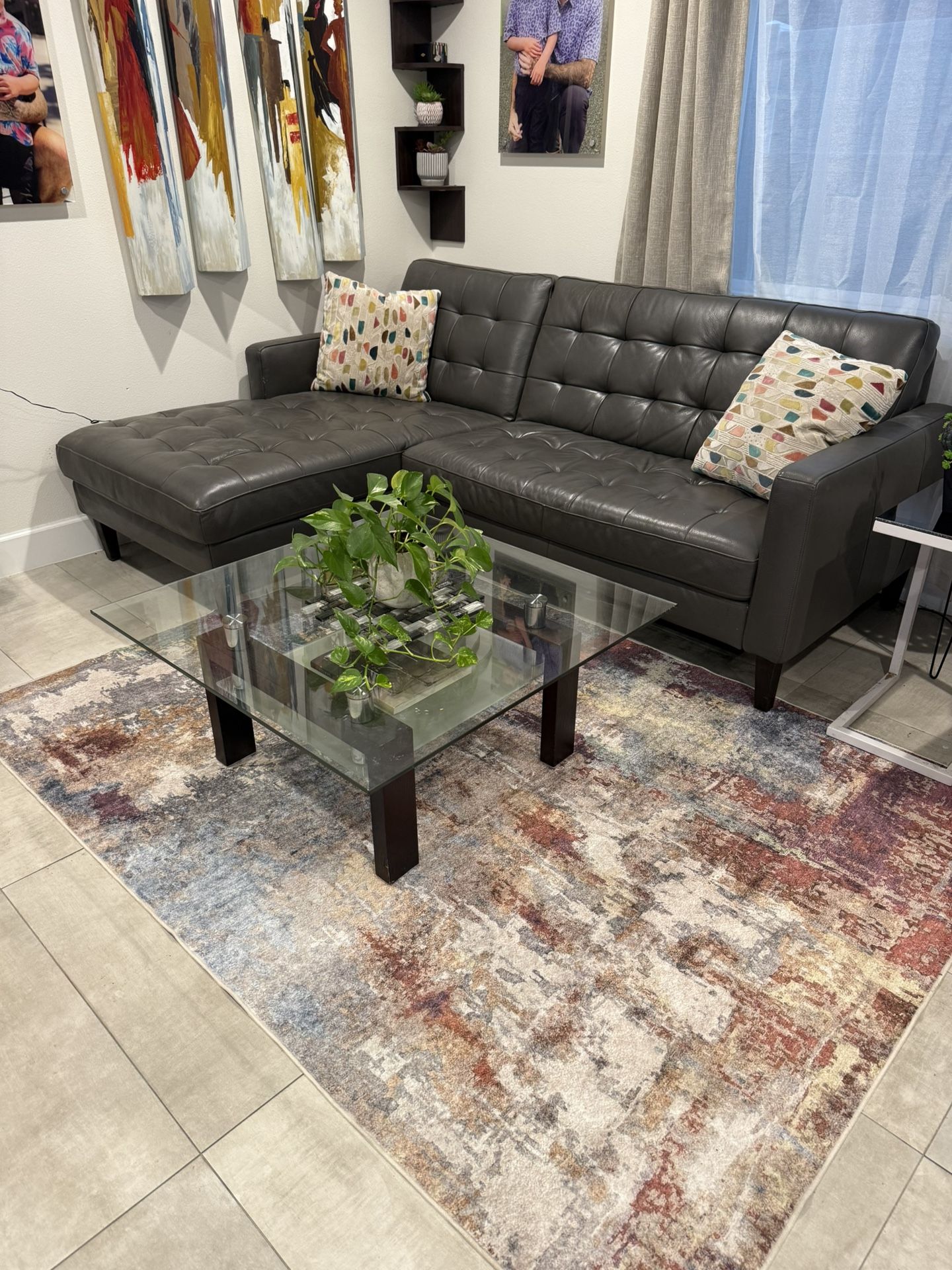 Charcoal Grey Real Leather sectional .