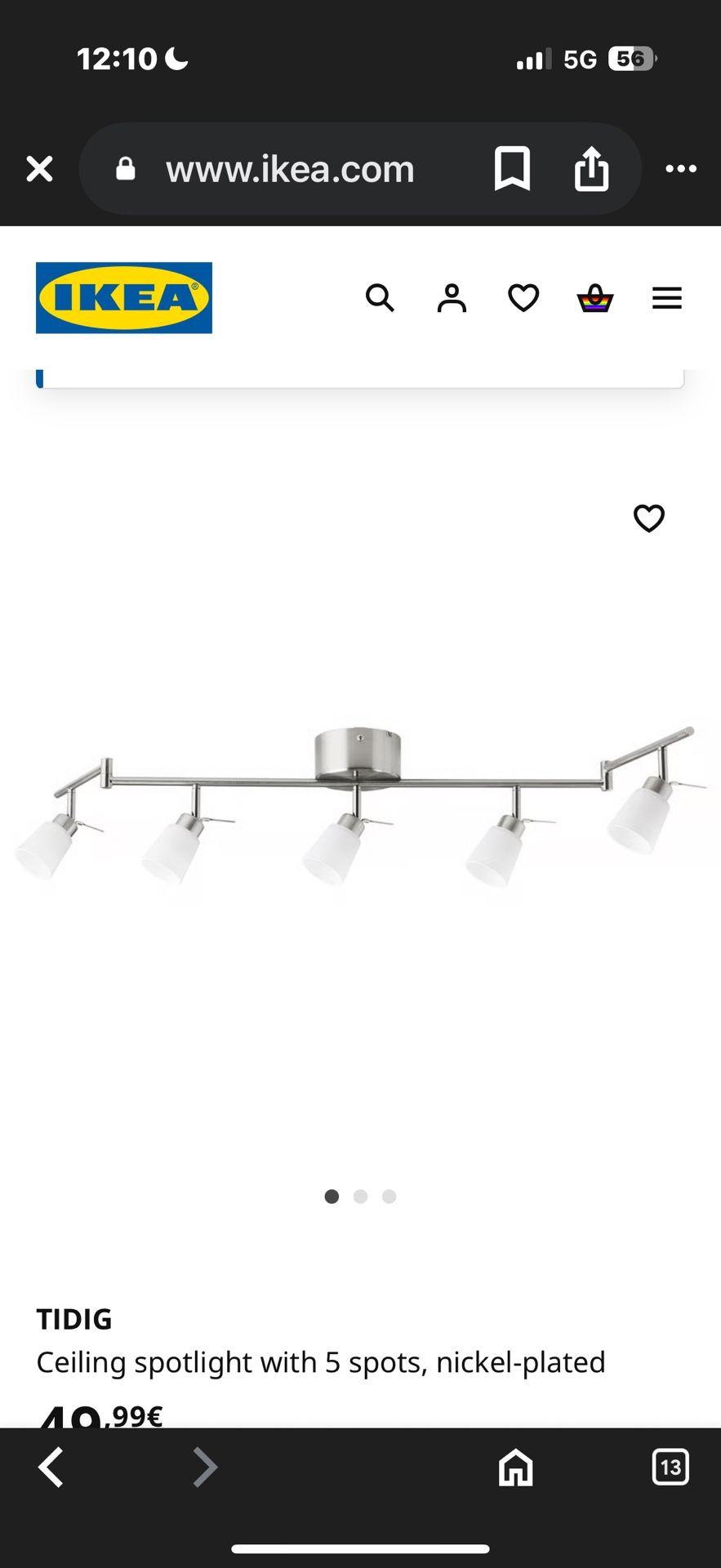 $10 IKEA TIDIG ceiling light with 5 spotlights