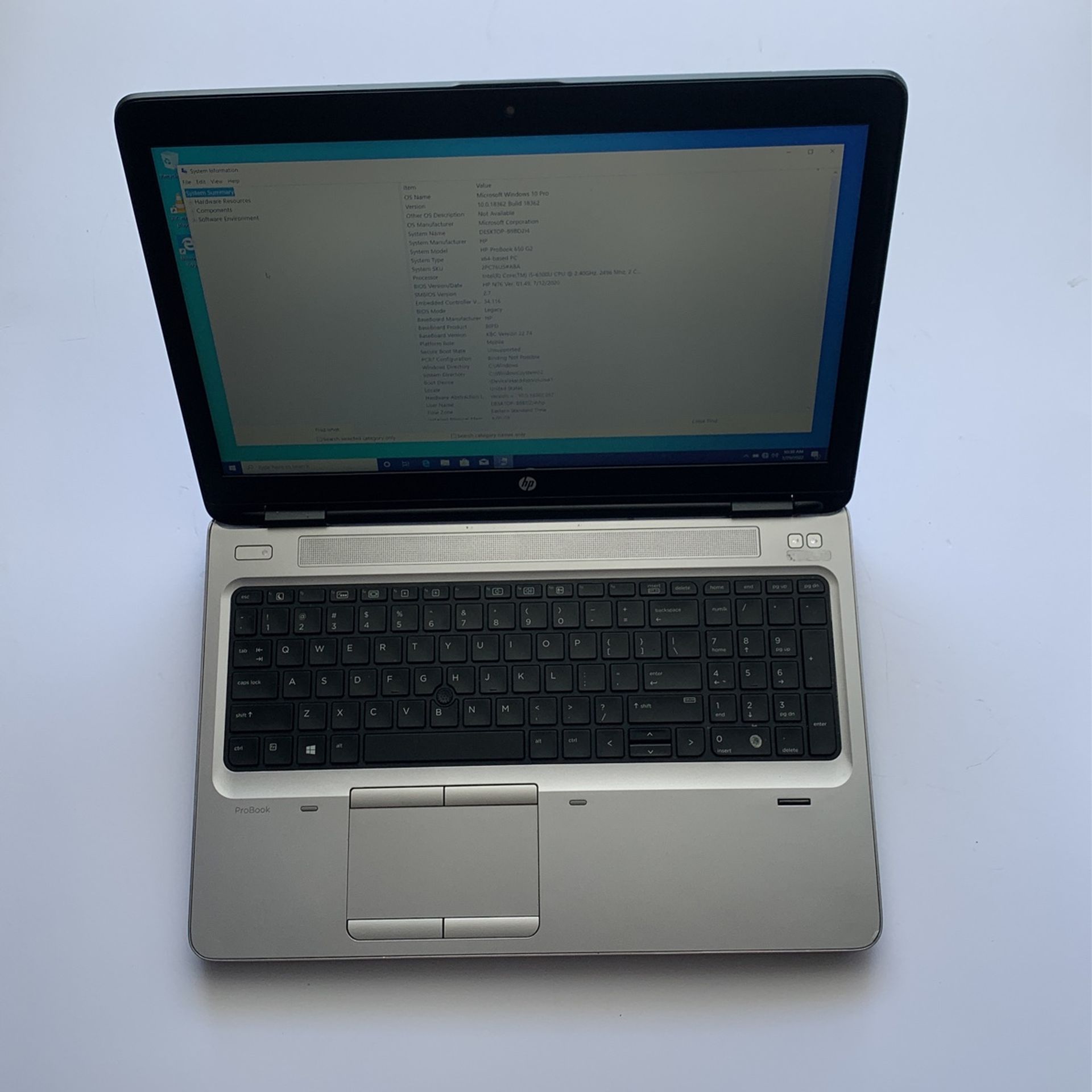 Hp ProBook Laptop Intel Core i5-5300U CPU @ 2.40 GHz Installed Memory 8 GB Installed Hard drive. 250 GB SSD Optical Drive. DVD RW Camera and WiFi Nice 6th generation Laptop