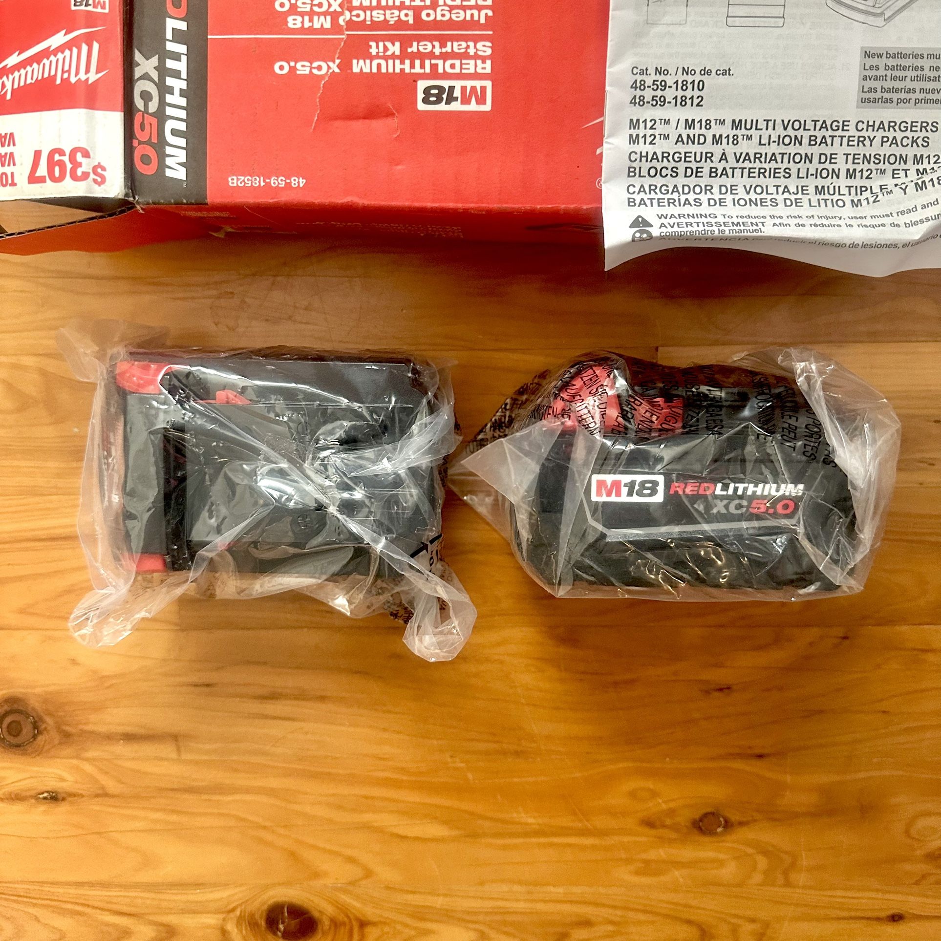 This is two batteries for the M18 Fuel series. These are the bigger 5.0aH cell packs. The battery charger is already spoken for so just the 2 battery packs are for sale. Price is for both ($65 per each). Warranty is good for 3 years.
