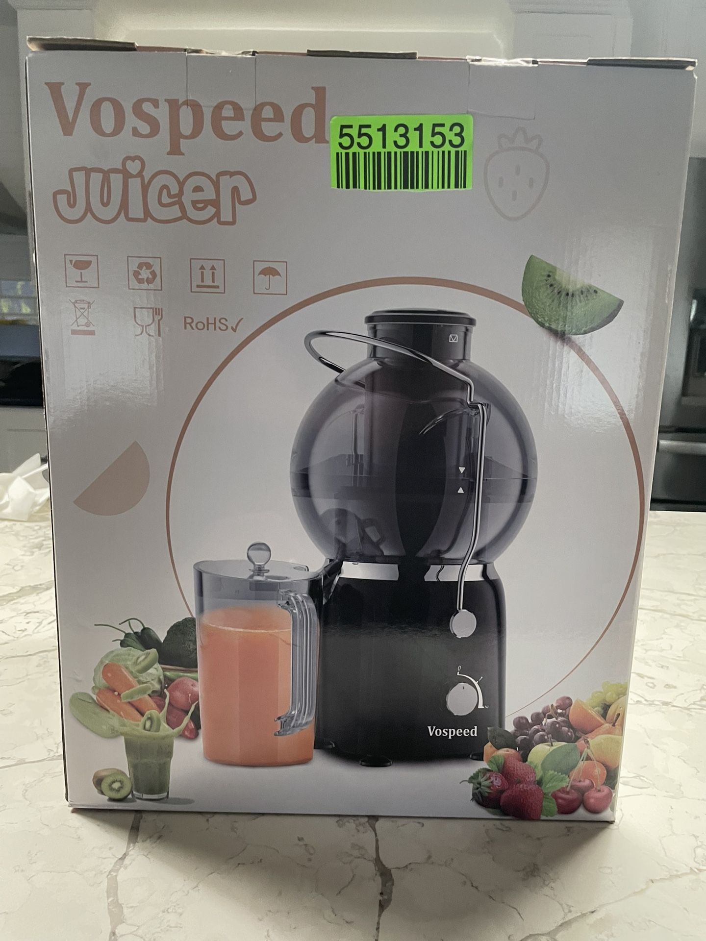 Brand new Juicer Maker,Vospeed Juicer Machines,750W juicer machines vegetable and fruit,With 3.5-Inch Wide-Mouth Feed Chute,Juice Extraction at Constant Temperature,With 1.2L Cup, BPA-Free,Easy to Clean (Black) $90.99 on Amazon Selling for $45 Available in stainless steel color