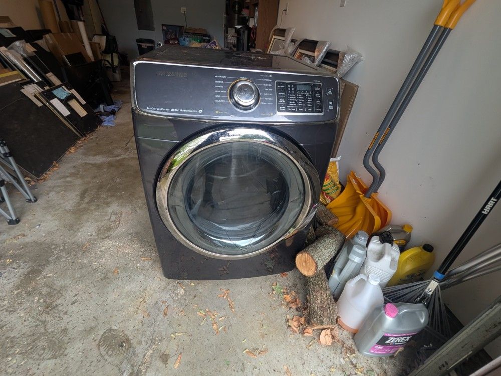 Bought brand new in 2016. Just replaced the idler pulley. The front plastic on the door is cracked, but that doesn't affect the drying capabilities. Comes with a 3 prong cord as well