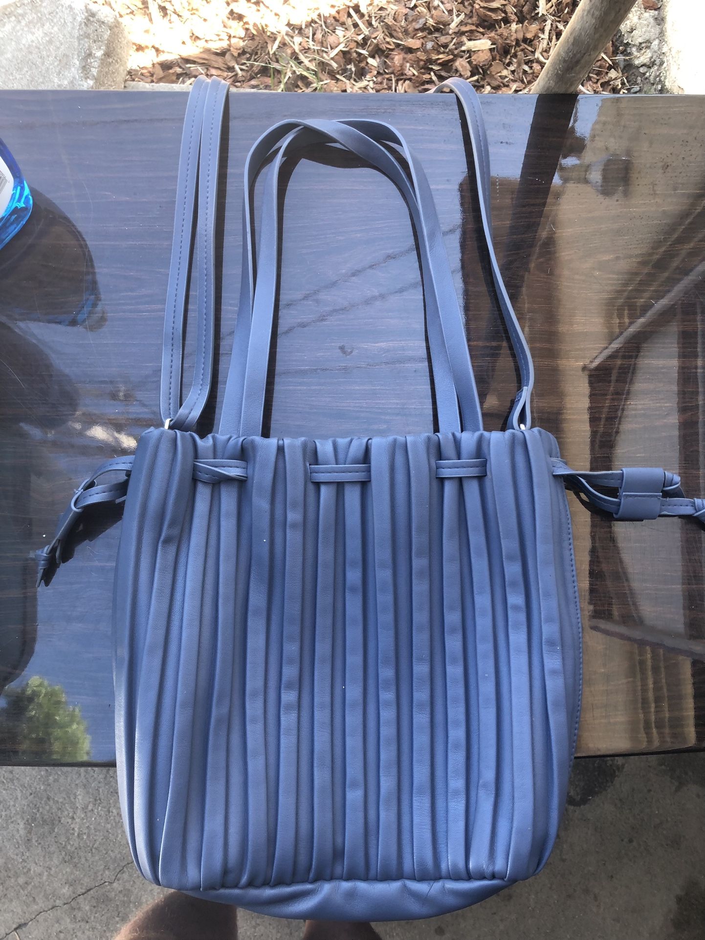 ZARA WOMEN’S PLEATED CROSS-BODY (SLATE-GREY) BUCKET HANDBAG PURSE