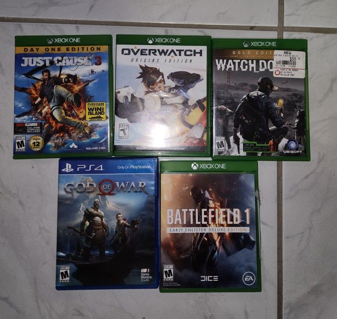 Just cause 4 Overwatch Watch dogs 2 Battlefield 1 $40 each