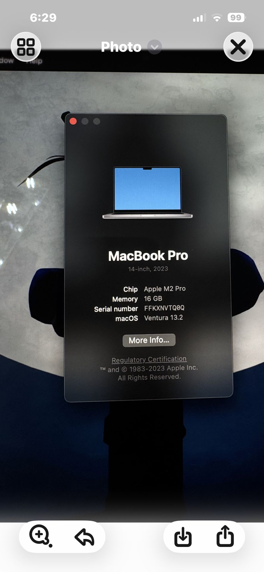 2023 14 inch macbook pro M2 pro Lightly used only for small amounts of time Condition is very good. No scratches on body or screen Slightly dirty between a couple keys but can be cleaned Message me if you’re interested