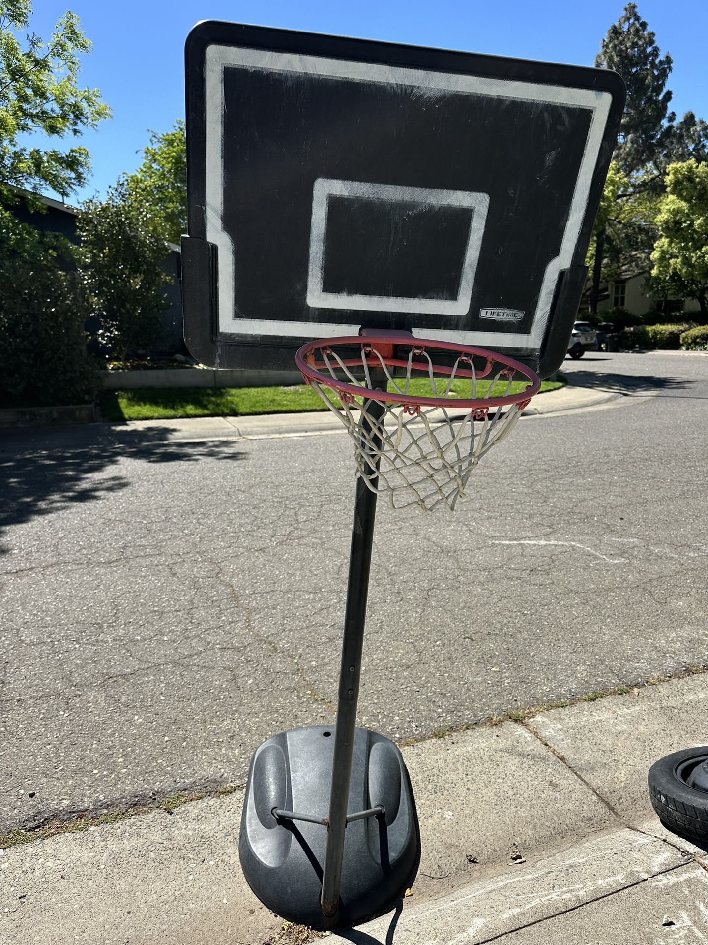 I have a medium size kids basketball hoop. I would say it’s a good size for kids ages 3 years - 8yrs. My kids are older now and have no use for it. Letting it go for free just come pick it up. Base hold water to keep it place. It’s used normal wear and tear but still in good condition.