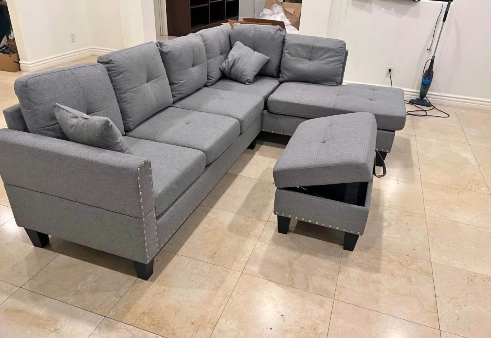 Brand new in the box Never opened L shape sectional sofa couch with ottoman Available for same day pick up Delivery available for additional fee depending on your location