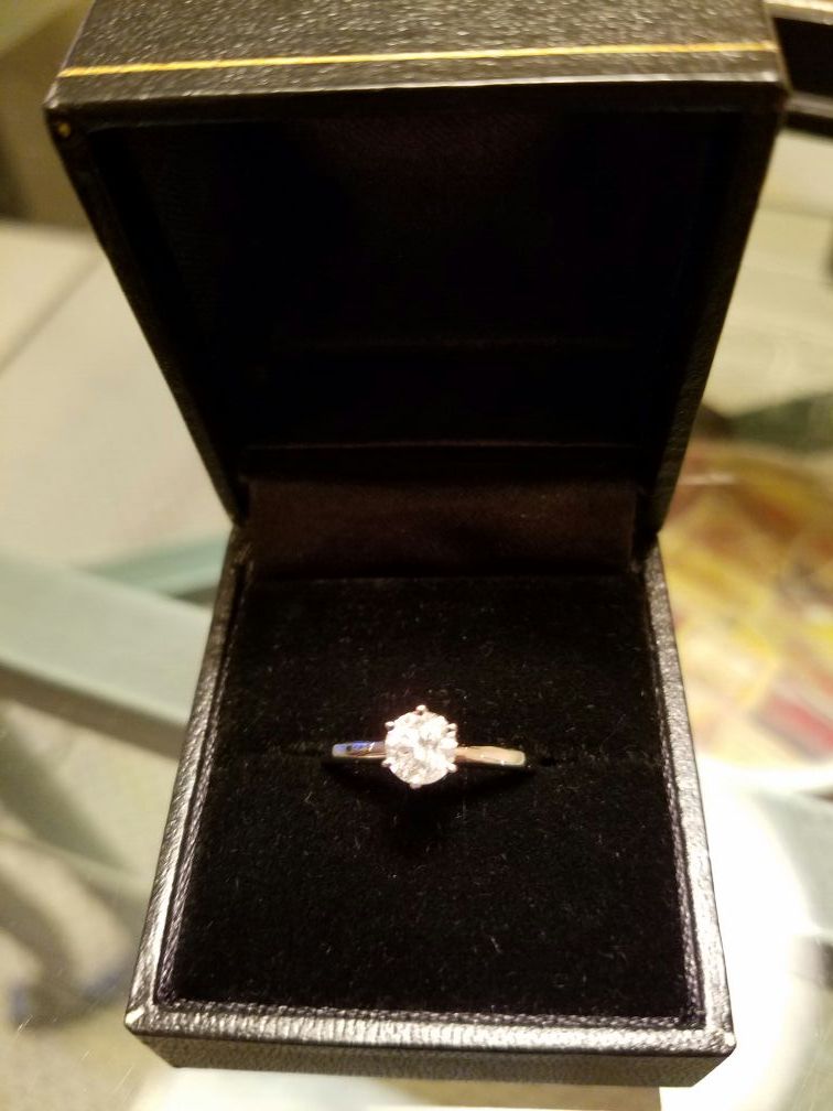 Beautiful Diamond set in a 6 prong 14kt white gold tiffany style mounting. Diamond is approximately .65 carats Ring is a size 6 but can be sized to any size 1000.00 or best offer