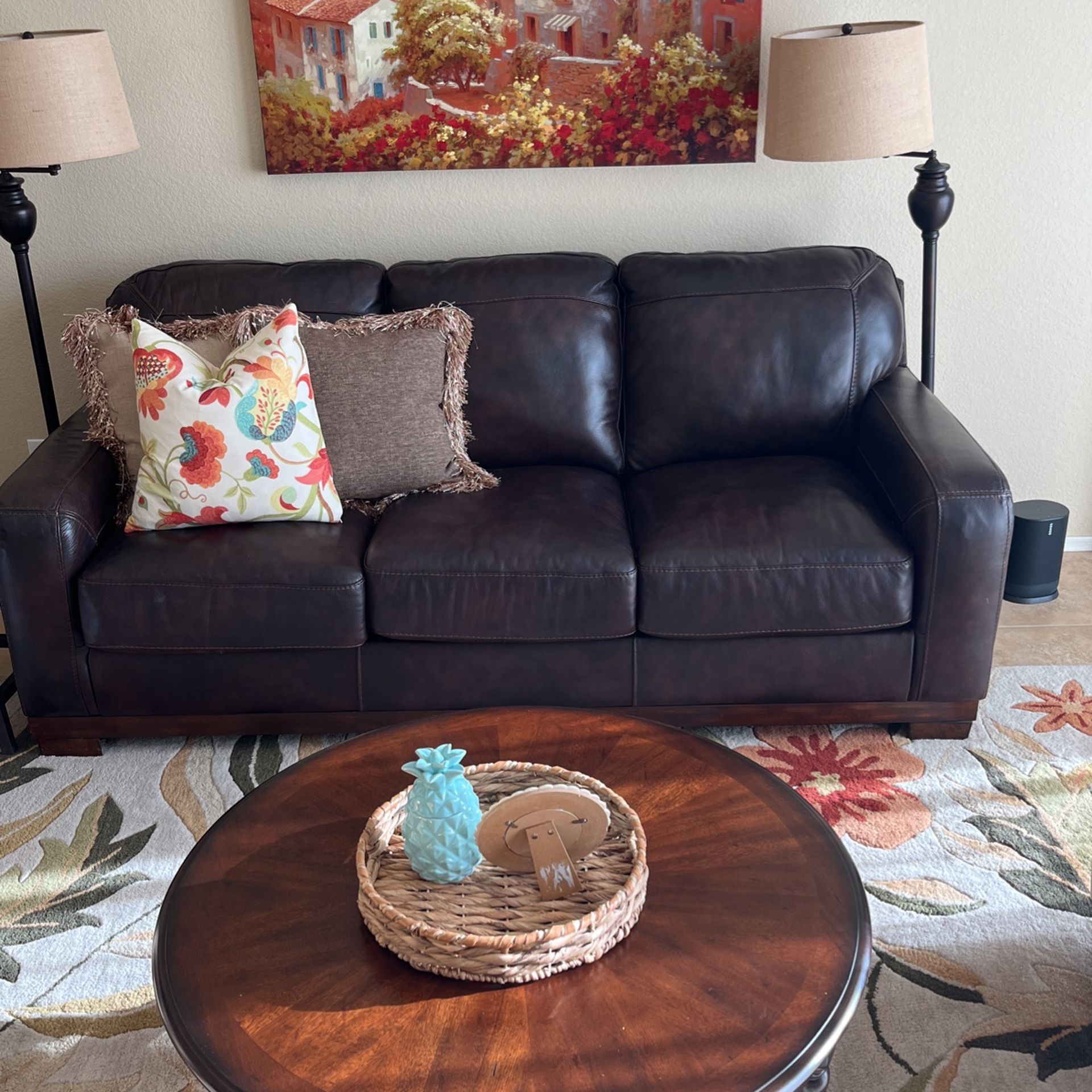 Leather couch. Looks brand new. Have used it but rarely as it’s in a room we don’t use much. Priced to sell. Don’t want it in my garage.