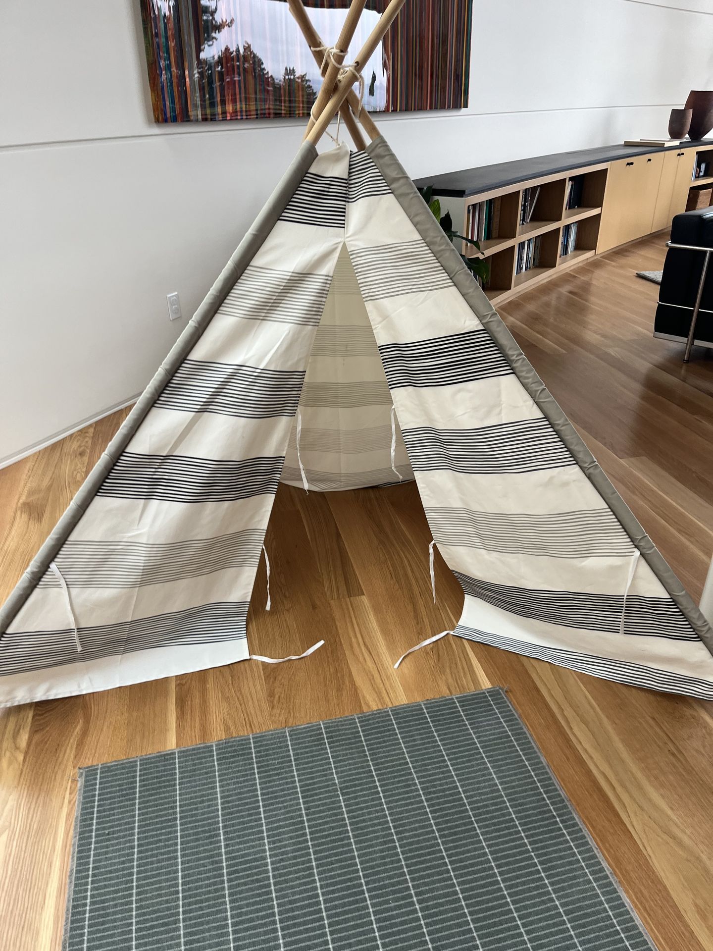 Comes assembled. Easy up and down. High quality fabric in excellent condition.