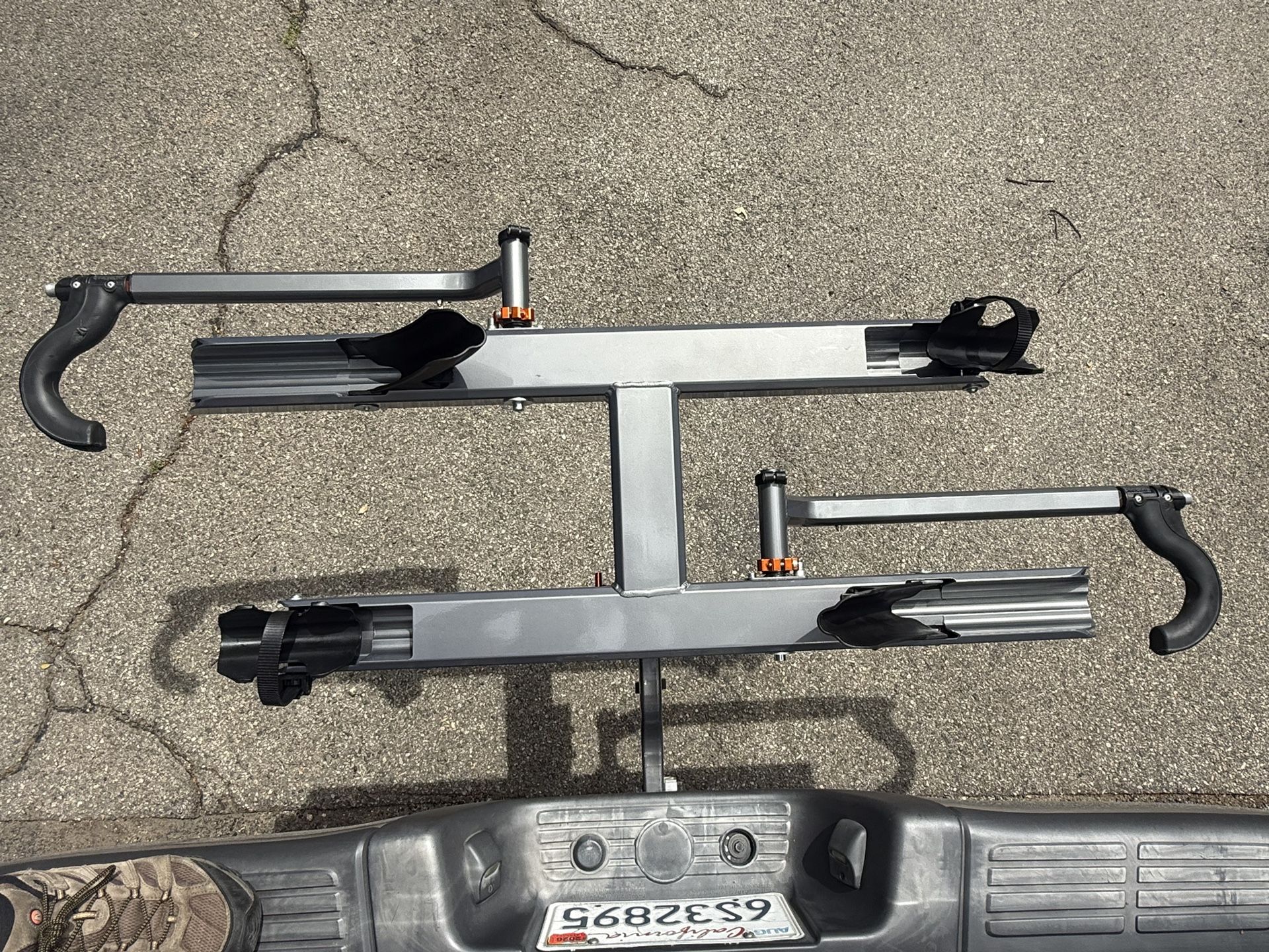 Model S101 in EXCELLENT condition. Near new appearance. Frame is rated for two bikes with a total weight of 80 lbs. Bike shown (not included) is an E-bike with battery removed weighing 31lbs. This model does not have an integrated cable lock. You will need to use your personal bike lock looped to the rack as shown to secure it from theft. Trailer hitch receiver lock included .