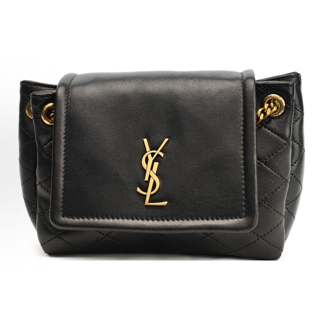 SAINT LAURENT Saint Laurent YSL nolita gold logo diamond checkered chain sheep leather shoulder bag cross-body bag mini women's black(122)56