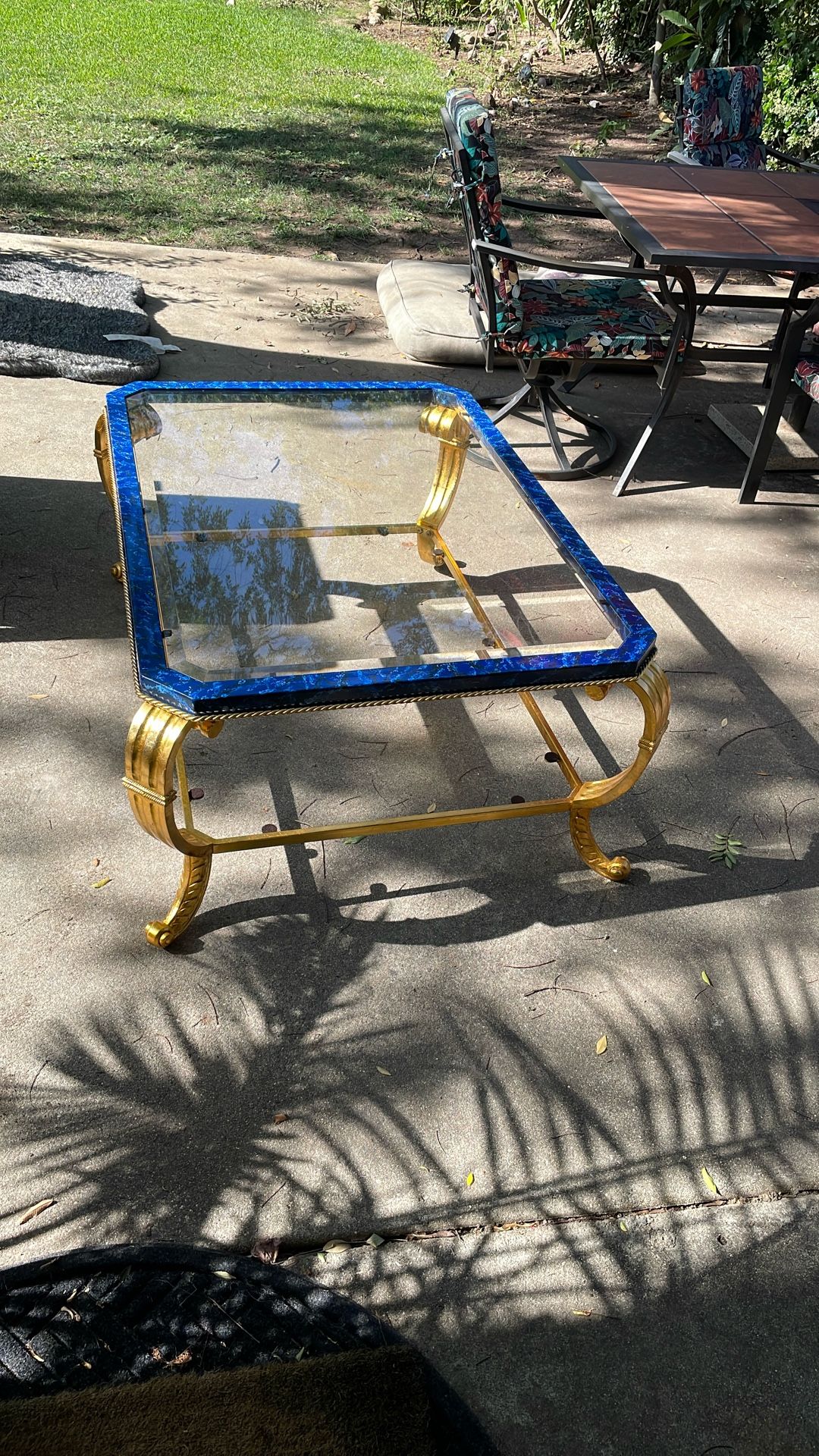 Glass Top Coffee Table With Gilt And Faux Lapis