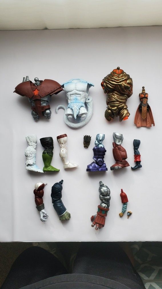 Antman Head $8 Hulk left leg $8 Okoye torso $8 Cull Obsidian head $8 Thor left arm $8 Joe Fixit hulk Right Arm $8 Molten Man torso $8 Demogoblin left leg $8 Demogoblin right leg $8 Crimson Dynamo Torso $8 Crimson Dynamo Left arm $8 Crimson Dynamo Right Leg $8 Caliban Torso $8 Caliban Right Leg $8 Caliban Right Arm $8 Wendigo Torso $8 Wendigo Right Leg $8 Kree Sentry Left Leg $8