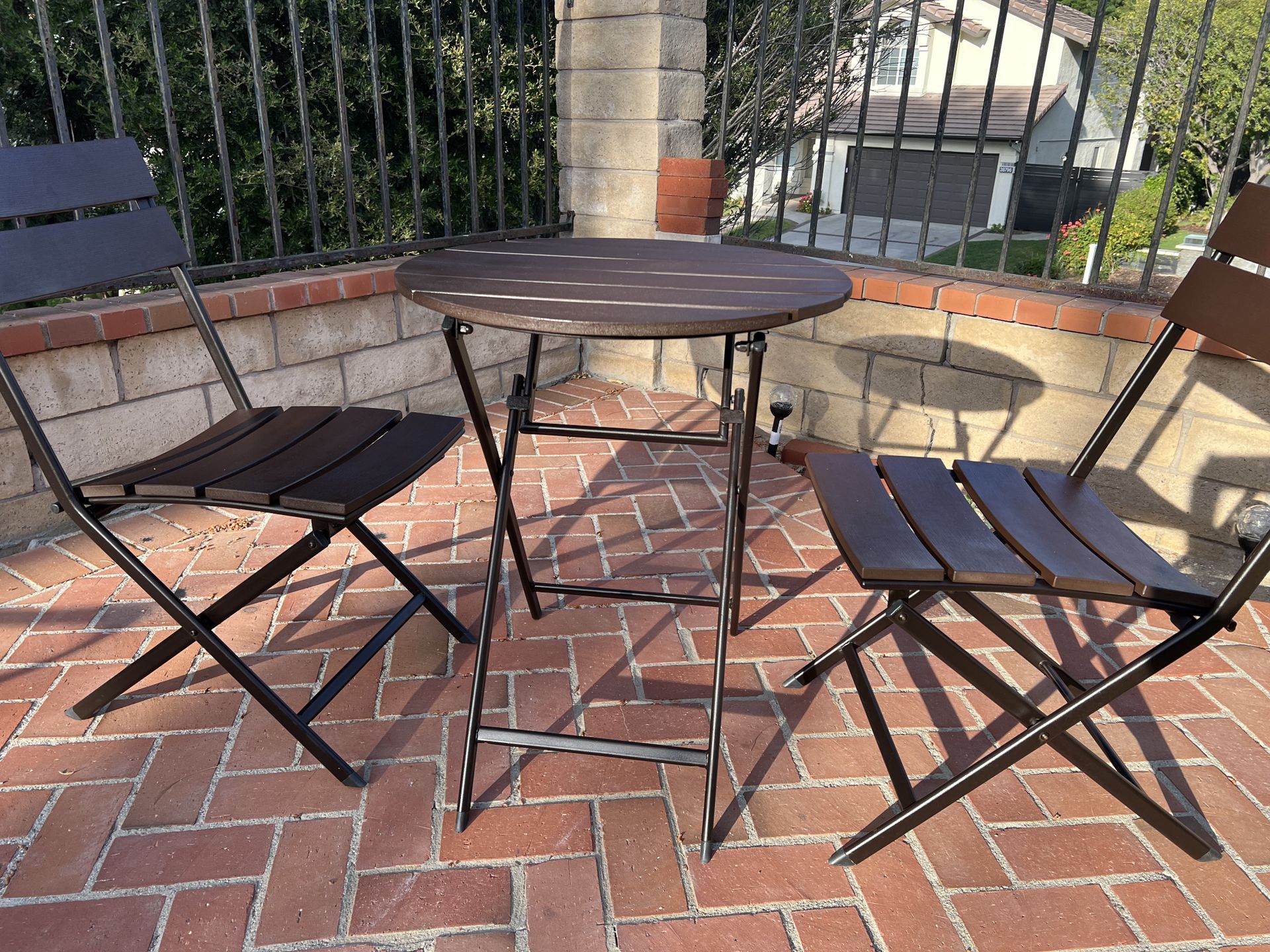 Foldable Metal Round Patio BistroTable and 2 Chairs