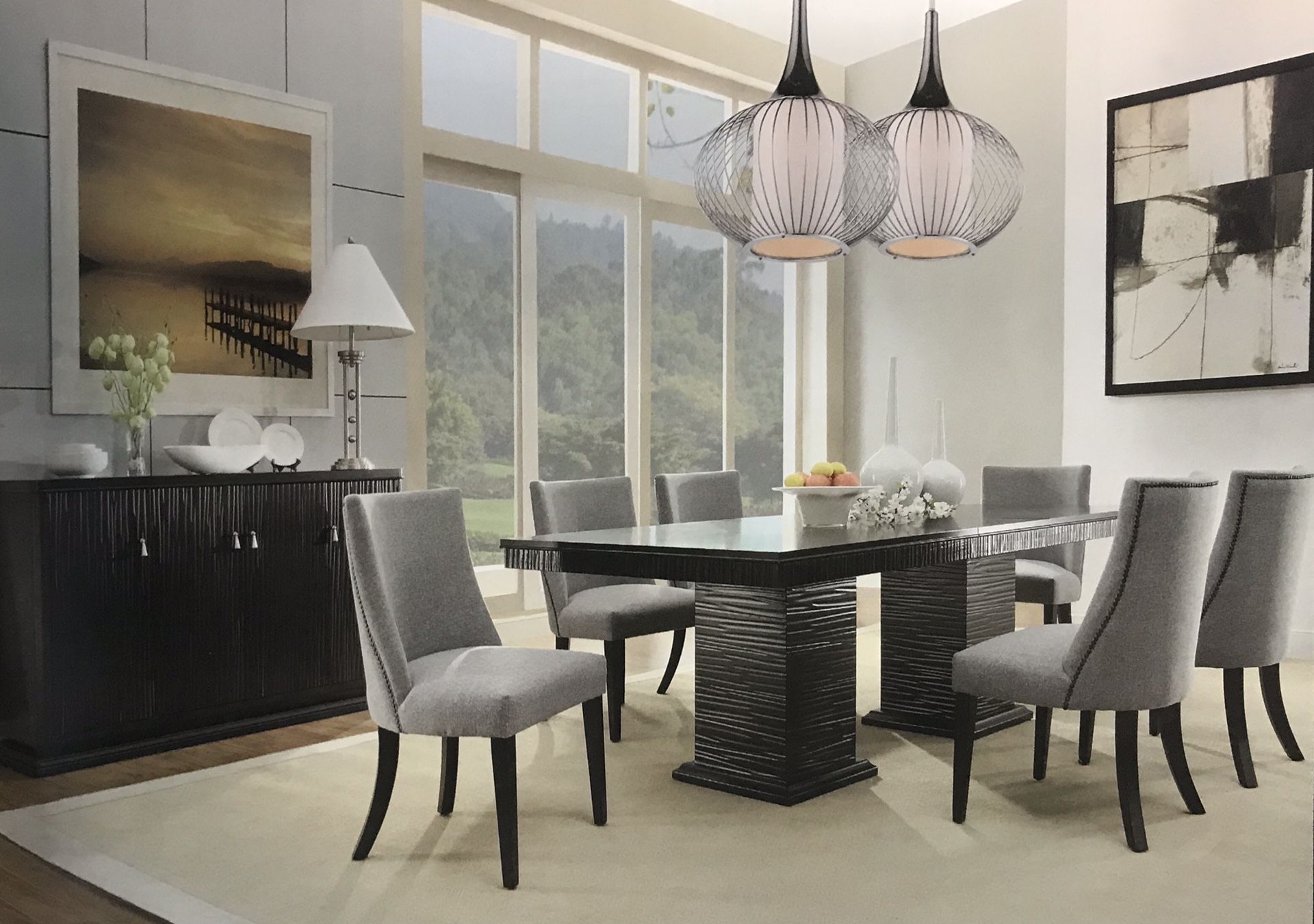 ****GOOD FRIDAY SALE**** Brand New Dining Room Set for Only $1299, Was $1499 Set Includes Table & 6 Chairs Deep Espresso Finish Uniquely Routed Apron Accent Double Pedestal Table Base Chairs Conform to Your Body Grand Sweep Arms Nailhead Accent Optional Matching Server Also Available Perfect for sophisticated addition for your dining room. Hablamos Español INCREASE YOUR PURCHASING POWER!!! Easy Approval Credit Check Program w/ 6, 12, 18 & 24 Months Financing SAME AS CASH IF PAID OFF IN 90 DAYS!!! No Credit Check Financing Also Available. Come See Us @ Zoe’s Furniture in Richardson, Texas Only!!! HE. Two Five Eight Eight-Nine Two. Seven Seven Nine. CS