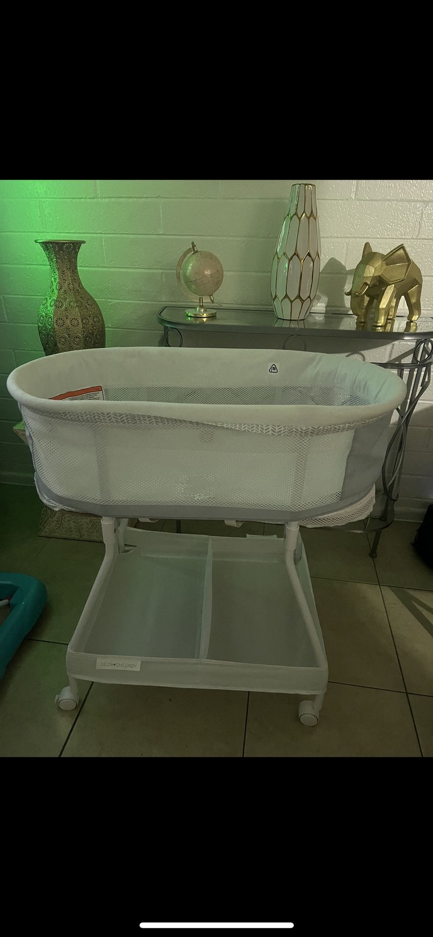 Still in good condition, I’m a very clean person, and my house is smoke free , and pet free. No pets. No smoking. Only used for my baby for about a month because I decided to switch to crib.