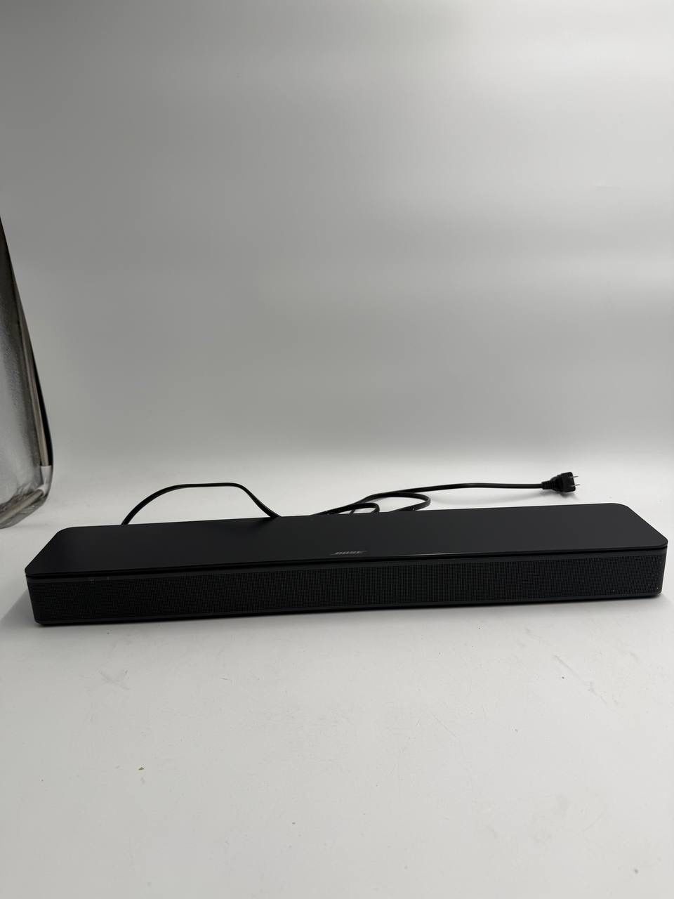 The product is a Bose Soundbar in black, specifically the Bose TV Speaker model. It is a wired soundbar that powers on without a remote. The listing includes photos of the slightly dented unit being sold as-is. As a trusted brand in home audio, Bose is known for producing high-quality speakers, and this soundbar is likely to deliver impressive sound performance despite its cosmetic condition. Compact Bose soundbar with powerful clear dialogue and balanced sound. Perfect for small to mid-size rooms. ๐น Brand: Bose ๐น Color: Black ๐น Power cable included ๐น Tested and working Condition: Pre-owned. Unit has a slight dent on the front grille (see close-up photos). Cosmetic wear consistent with normal use. Remote control is NOT included. Powers on but canโt connect without remote. Soundbar only with attached power cord. Please review all photos carefully before purchase.