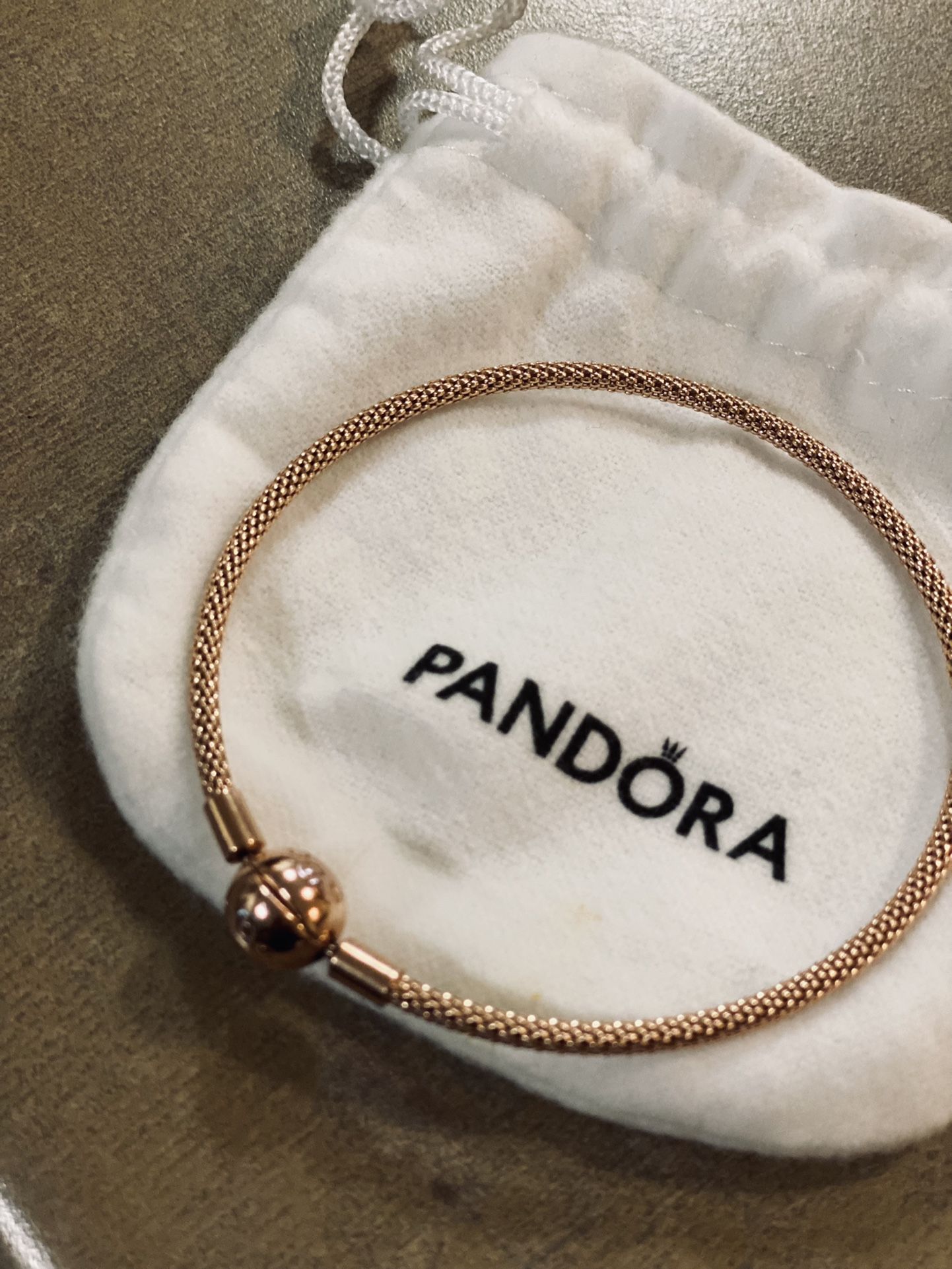 Brand new Pandora moments mesh bracelet that I gave as a gift to my wife but fit her alittle bigger than she would like size 21. Never used she never got around returning it for a smaller one so it’s up for sale $160 OBO