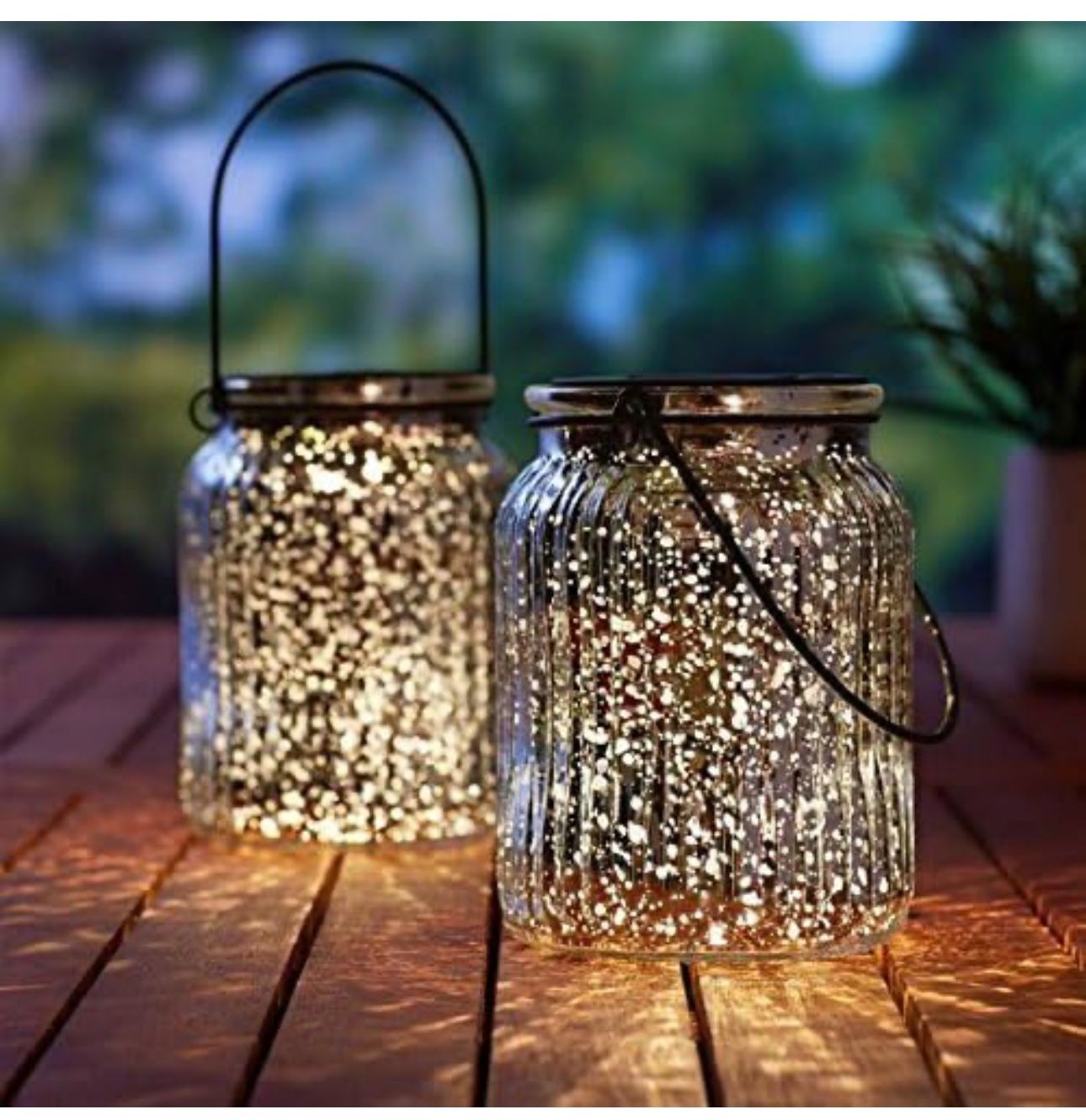 Solar Mercury Glass Jars 2 Pack Outdoor Table Lamps (Silver)
