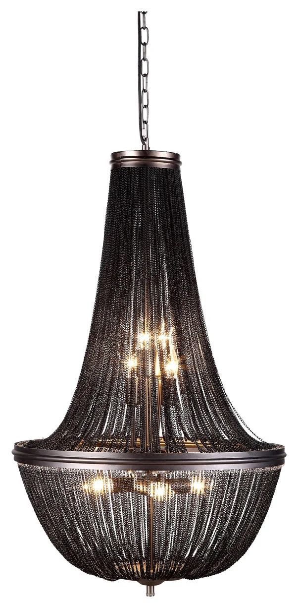 Brand New In The Box RESTORATION HARDWARE Pendant Style Chandelier Lamp D:21in H: 33'' Lt: 6 Dark Gray Finish. The Paloma Collection consists of the classic empire shape but with dark Gray or pewter strands draping the frame. Comes in both a pendant and a flush mount. Chain/Wire Included: 5'/12' BRAND NEW IN THE BOX, NEVER OPENED $400 OBO Light Bulbs: 6 Bulb Type: E12 Bulb Wattage: 40 Max Wattage: 240 Voltage: 110V-125V UL & ULC Standard: Yes Hanging Weight: 11.2