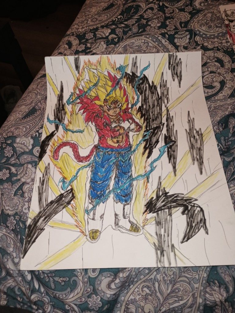 This is a drawing I did of daima goku ssj3and daima Vegeta ssj3 fusion into daima vegito super super Saiyan 4