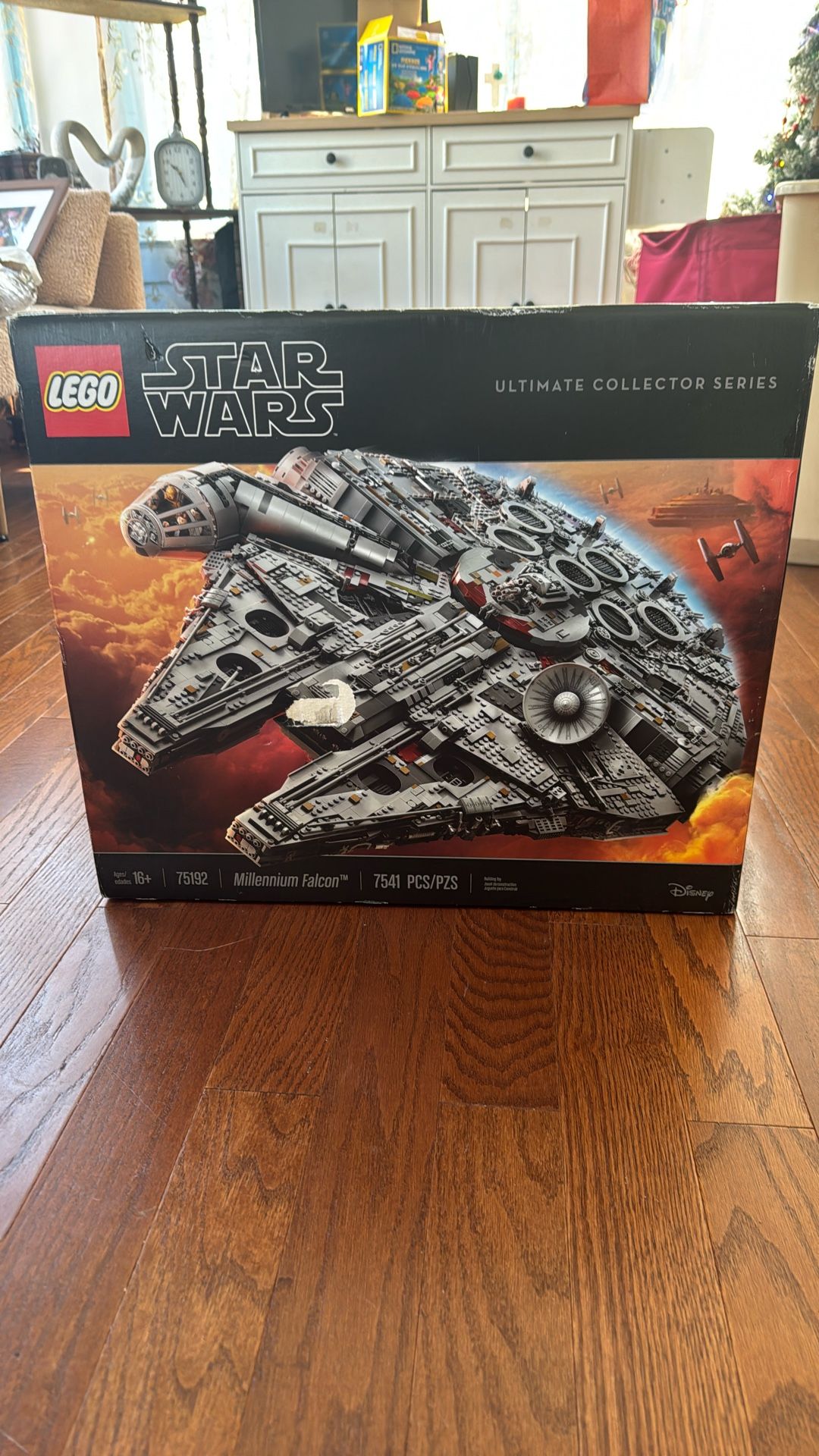 Brand new millennium falcon ultimate collector series #75192 never opened! Makes an excellent gift for that Lego builder. Box has some minor wear.