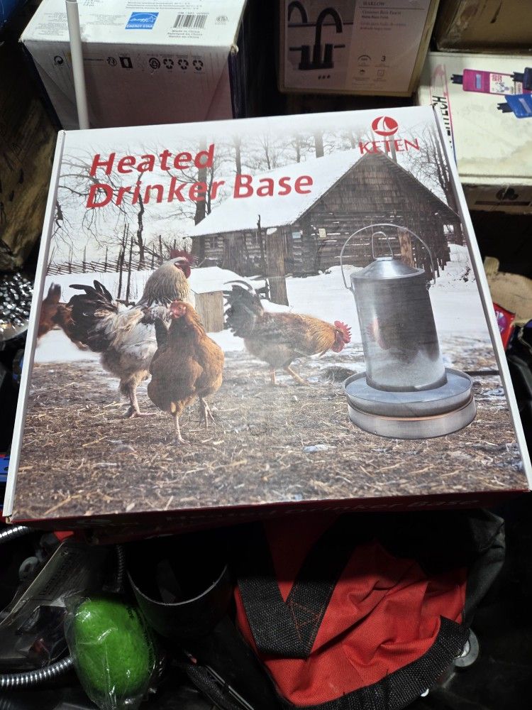 Harris Farms Heated Drinker Base. This product is designed to prevent poultry water from freezing in cold temperatures. It is thermostatically controlled and has 125 watts of power. The base is designed to keep water from freezing in temperatures as low as 10°F (-12°C). It can be used with both plastic and metal drinkers. The manufacturer recommends using it in a dry, covered outdoor area.