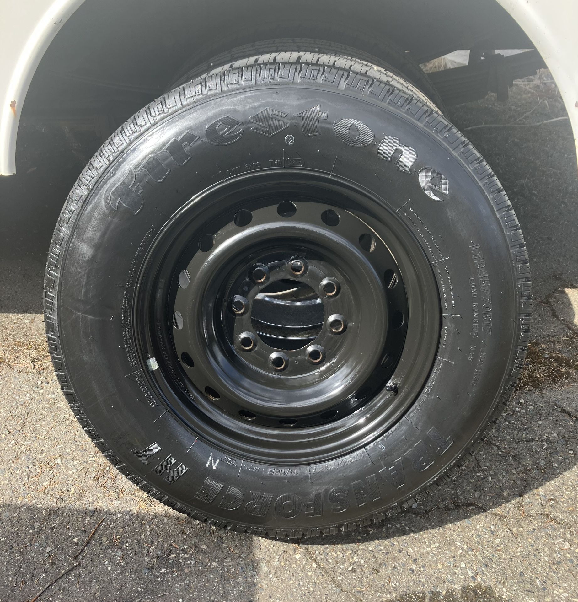 Firestone Tire, Transforce HT. LT245 / 70 R17 Load Range E / 10 ply. 15/32 tread depth. The wheel is branded Nissan. 8 hole 6.5” on center. Hub 4.75”. Stud hole 16.5mm - 11/16”.