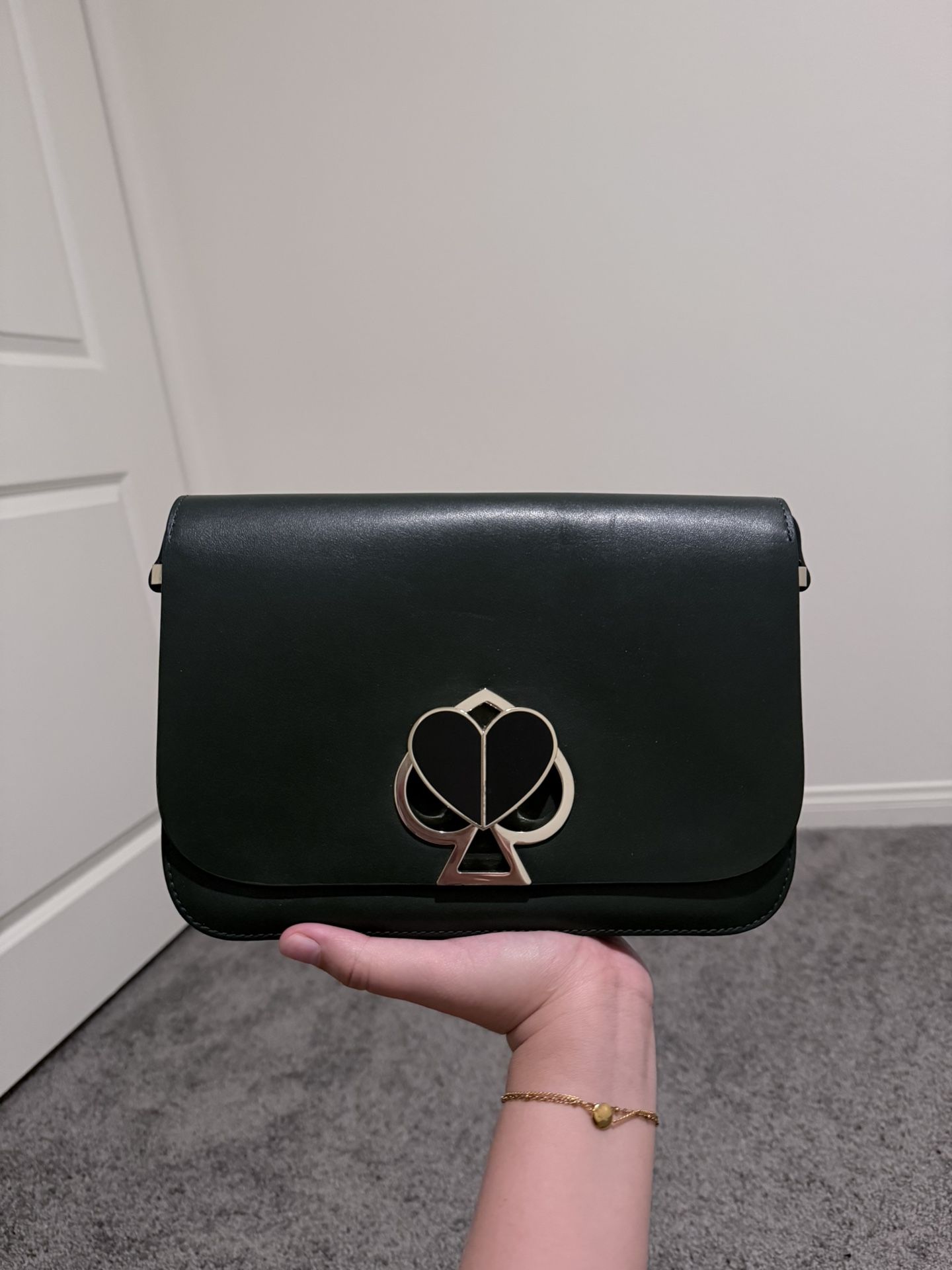 Green Nicola handbag from the speciality Kate Spade boutique It was a limited edition piece and color way Turn lock feature Paid $398 + tax Decent condition overall - 7.5/10 (please see last photo for wear)
