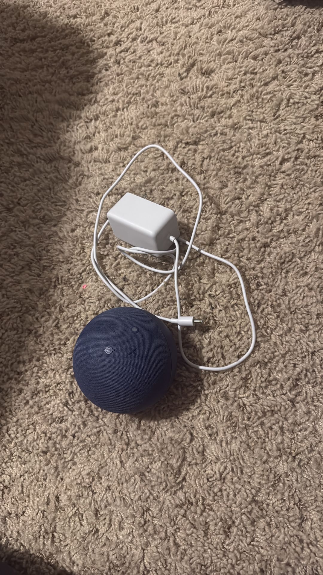 Blue Alexa with charger.
