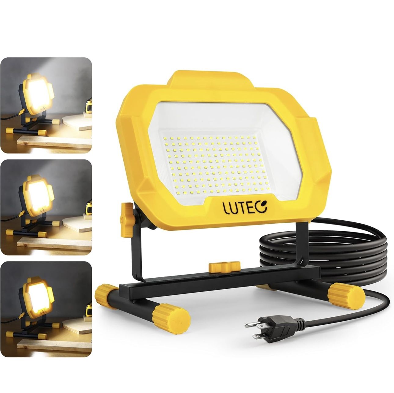 LUTEC 12500 Lumen LED Work Light, Dimmable Flood Lights with 3 Brightness Levels, IP65 Waterproof Portable Job Site Lights