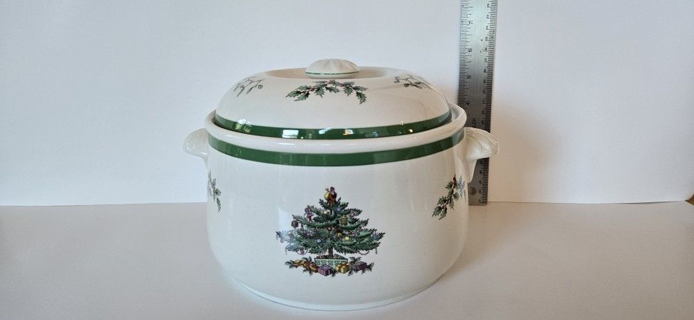 Spode Christmas Tree 1 Quart Round Covered Casserole (England). No chips or cracks, but the paint on the lid's rim is chipped on one side (see photos).