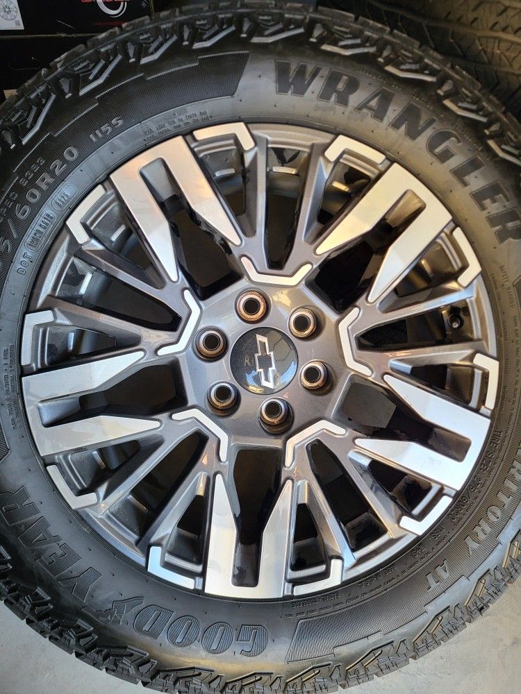 New 20" original 2026 chevy tahoe Z71 wheels with goodyear wrangler all-terrain tires 275/60/20 . Adking $1750