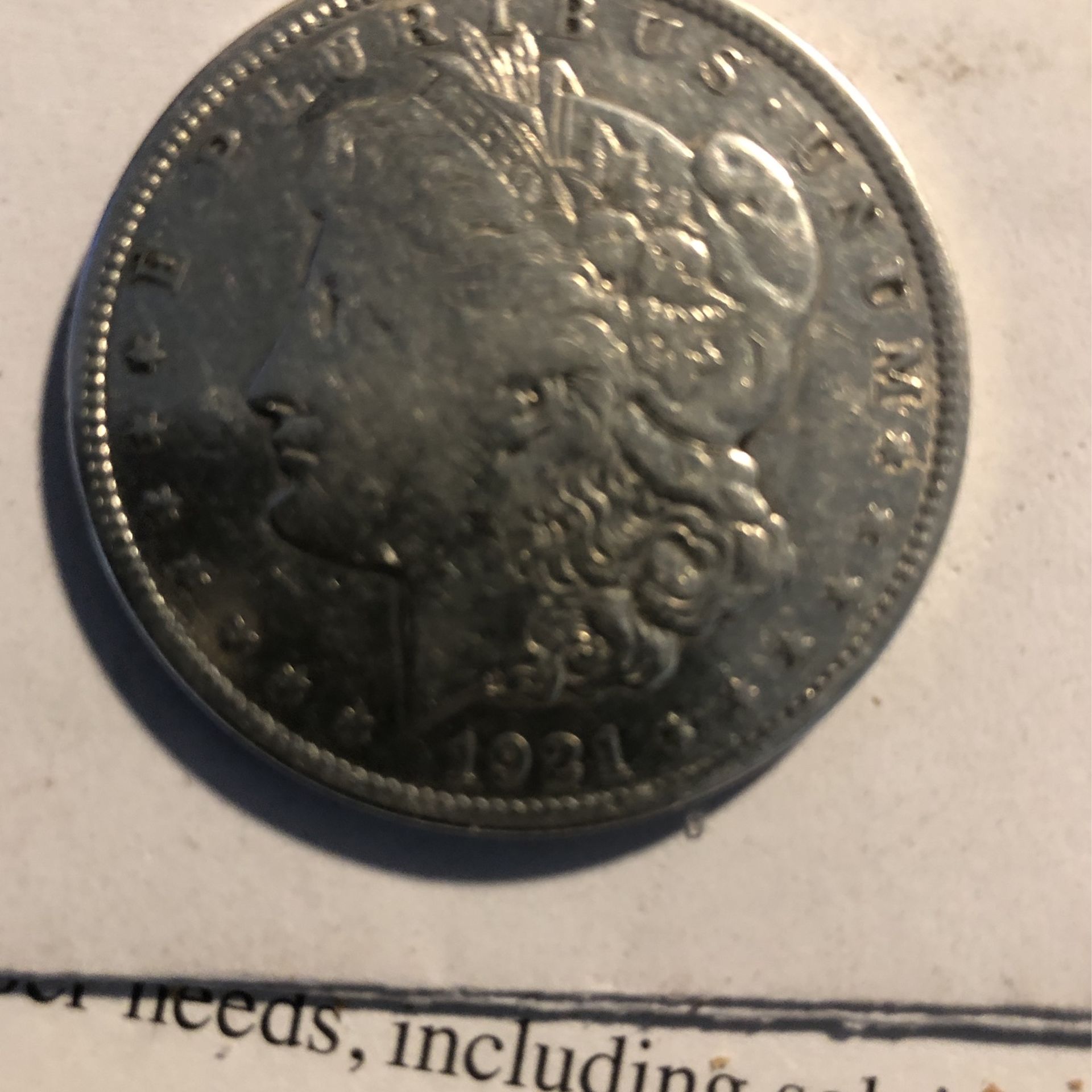 1921 Silver Dollar/ With Above Eye Mint Strike