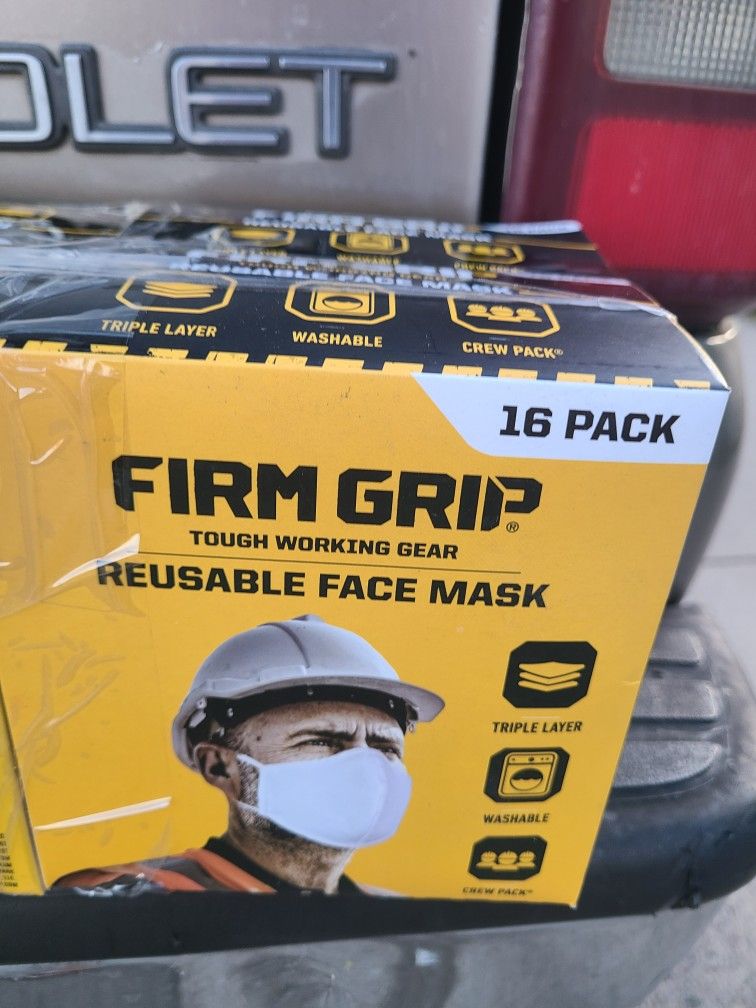 Firm grip Face masks.. Packs of 16 each Reusable Asking only 6 a pack.. I have 30 packs avaliable 6 dolares el Paquete de 16