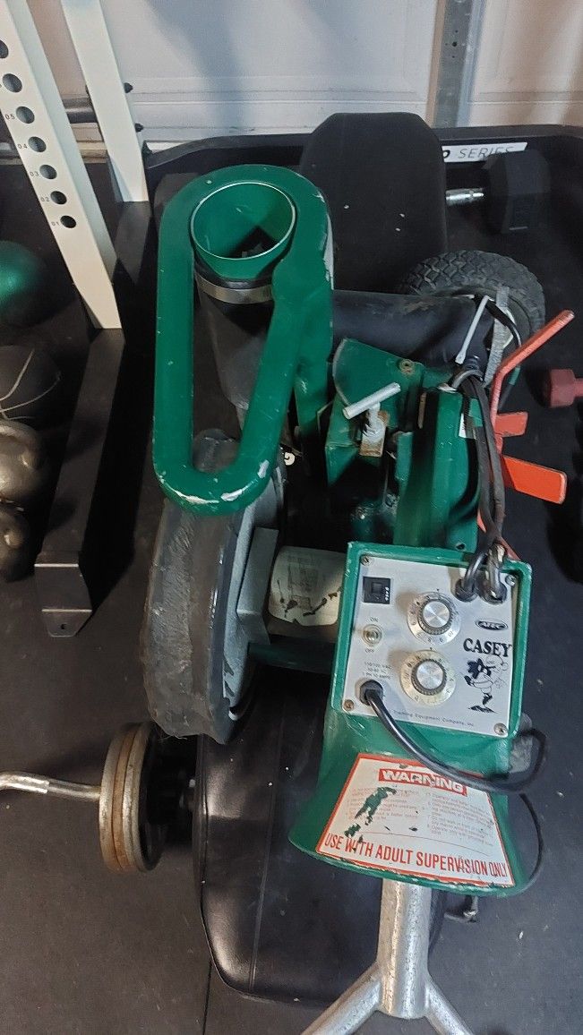 Atec Casey pitching machine. Throws baseballs, runs fine. Needs poles.
