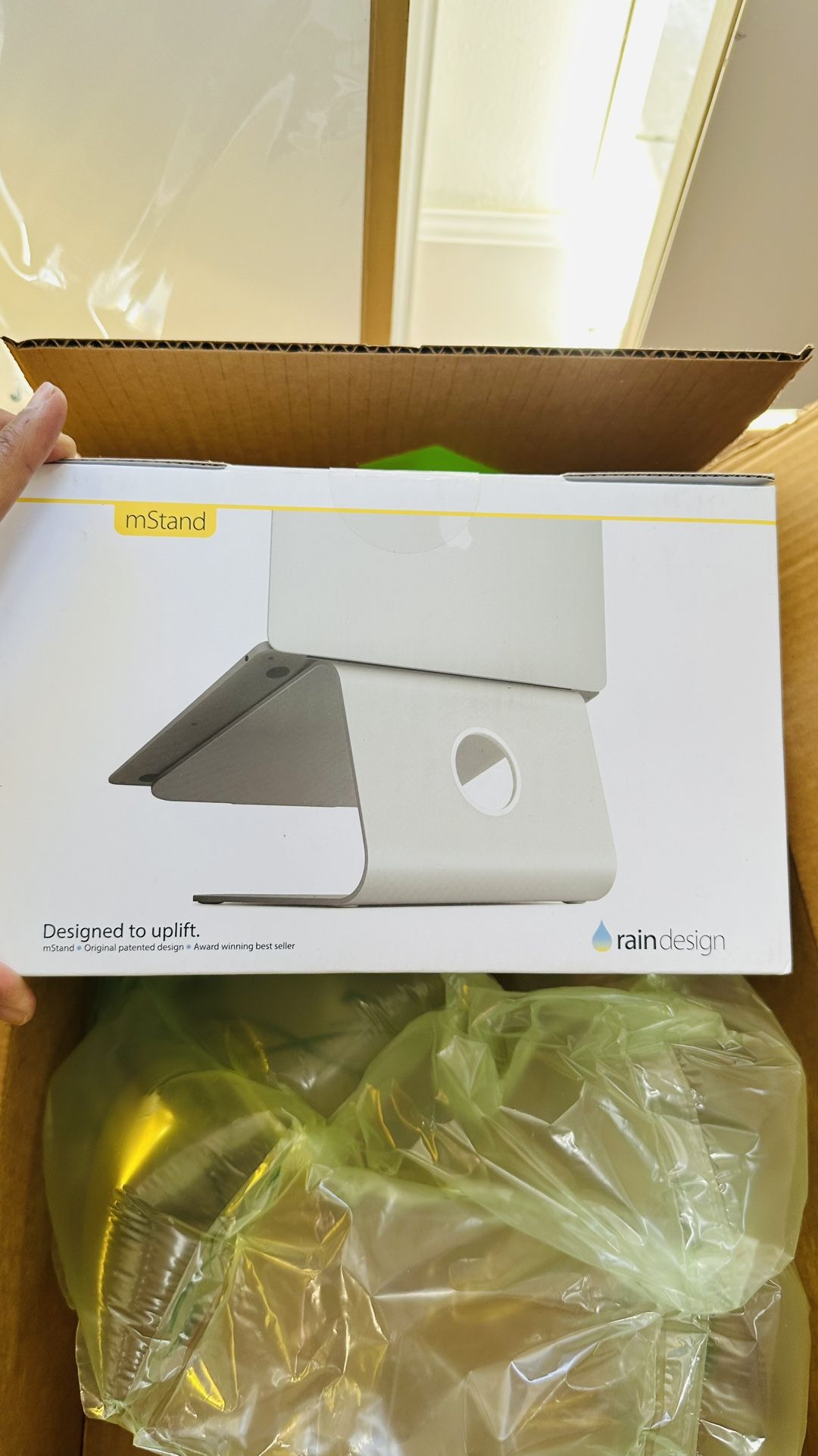Brand new box pack Raises notebook screen height to eye level for better ergonomics (5.9 inches). Single piece aluminum design provides solid stability and acts as a heat sink to cool laptop The back cable management hole is 2 inches in diameter. Cable organizer behind routes wires neatly Sand-blasted and silver anodized finish matches Apple notebooks. Keyboard stash clears up desk area when not in use Compatible with Apple Macbook Pro, Macbook Air and other laptops with depths less than 10.4 inches
