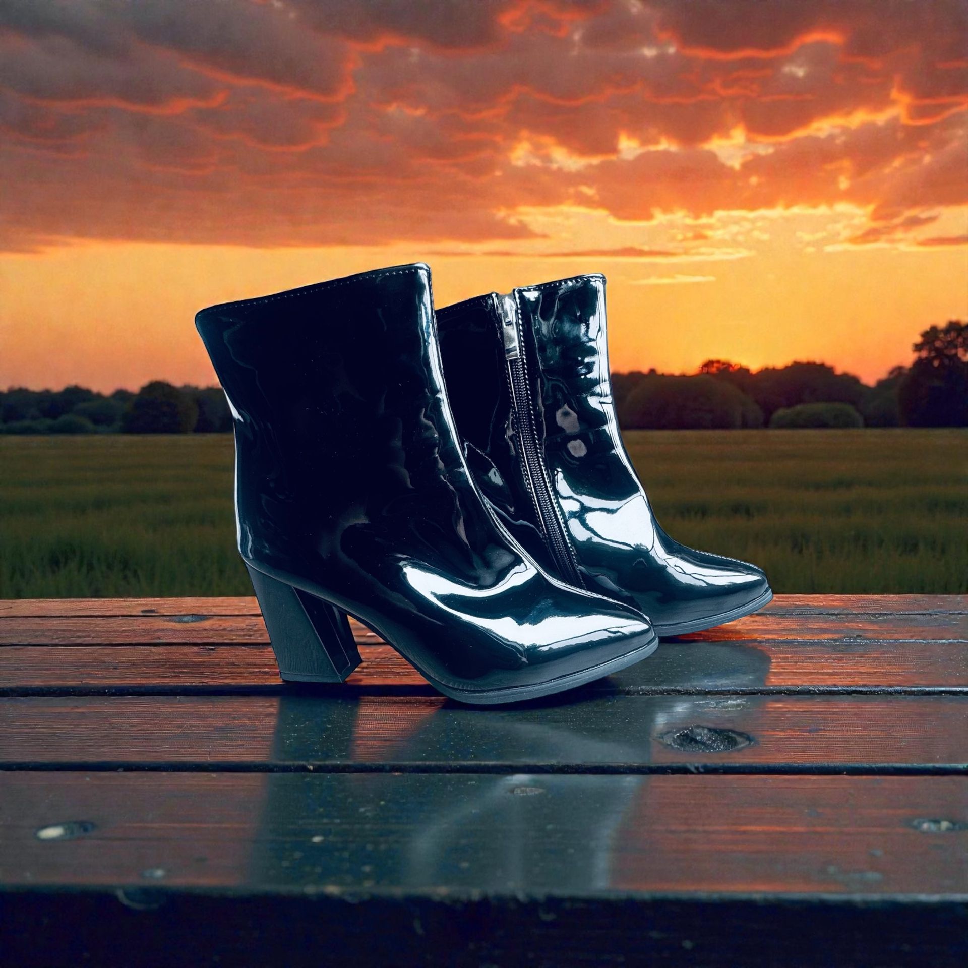 NEW Women’s Black Patent Ankle Boots – Block Heel – Side Zip – Size 8 – Elegant & Chic