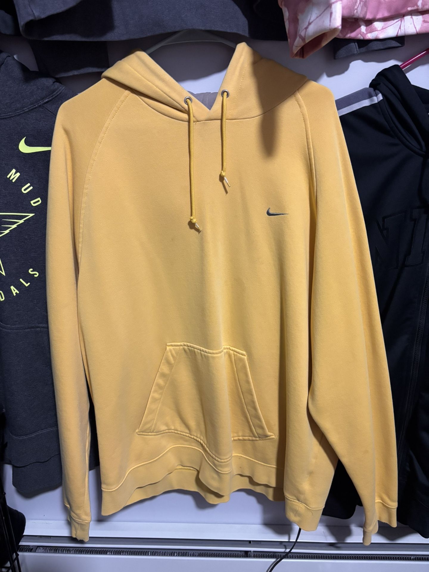 Nike Vintage 90s Solo Swoosh Hoodie XL Yellow Grey Tag Rare Streetwear Mens
