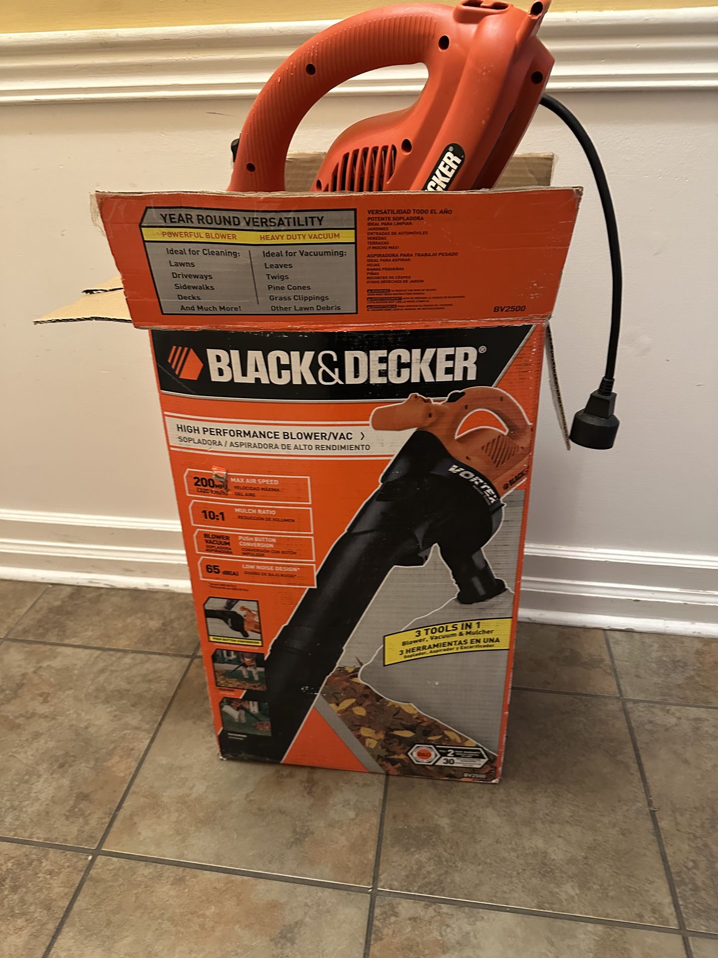 Black and Decker blower Vac With push button conversion Idea for vacuuming leaves, pine cones and other debris Has All Attachments for Blowing and Vacuuming Hardly used