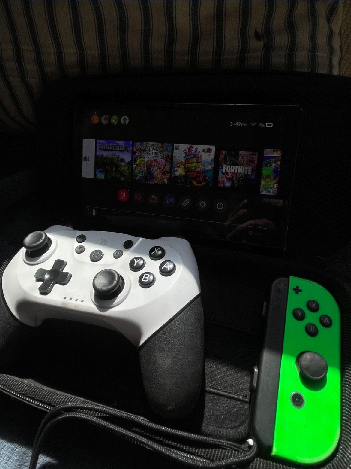 1 joy con with rail, joycon is in perfect condition nothing wrong with it but the grip comes with onn case & wireless switch controller perfect condition nothing wrong with it but a few scratches comes with super smash brothers scratch screen like shown in the photo speakers work normal charger jack good kick stand is good