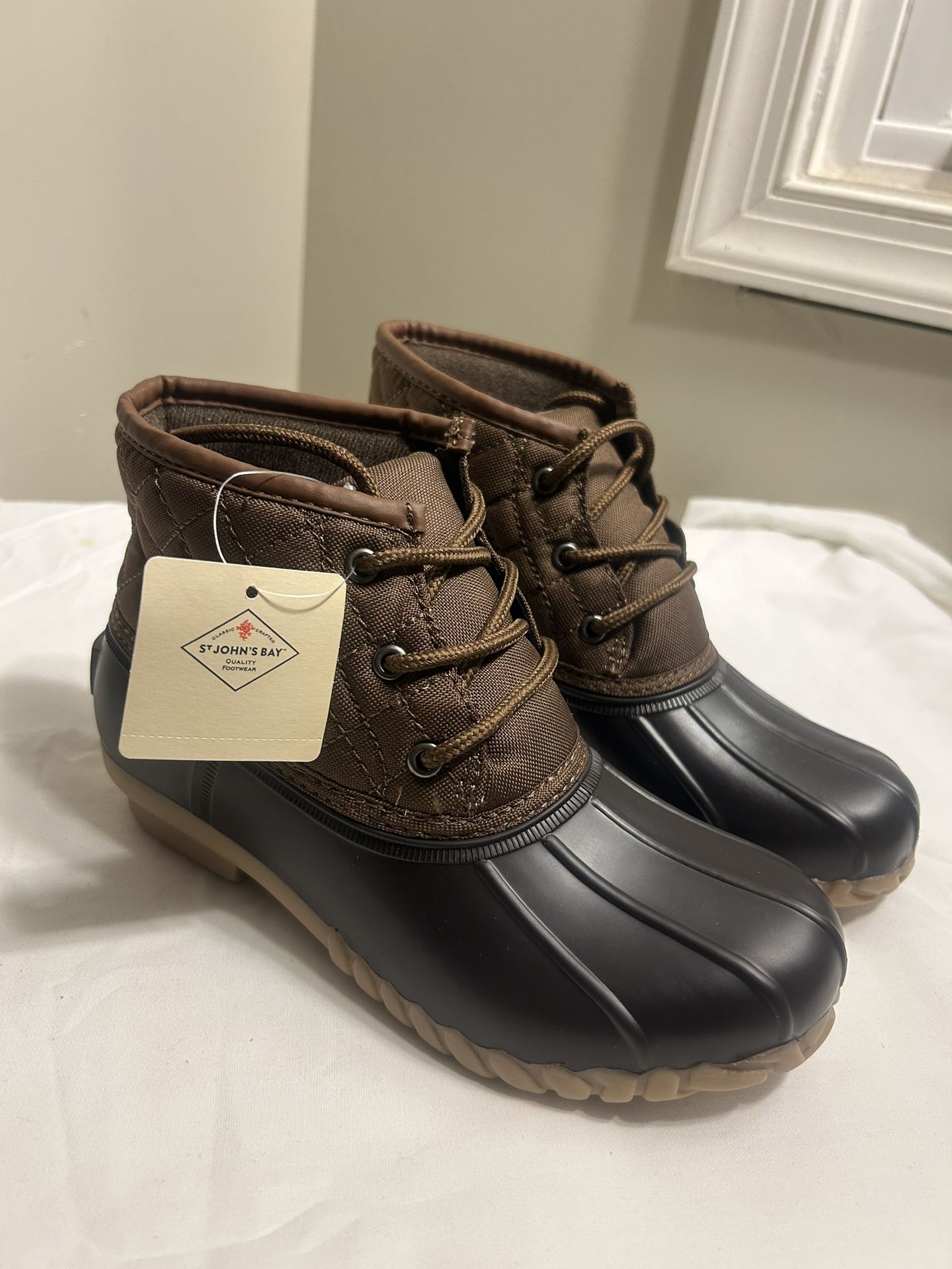 St Johns Bay Duck Boots Womens 6M Winter Snow Brown Quilted Lace Up Comfort