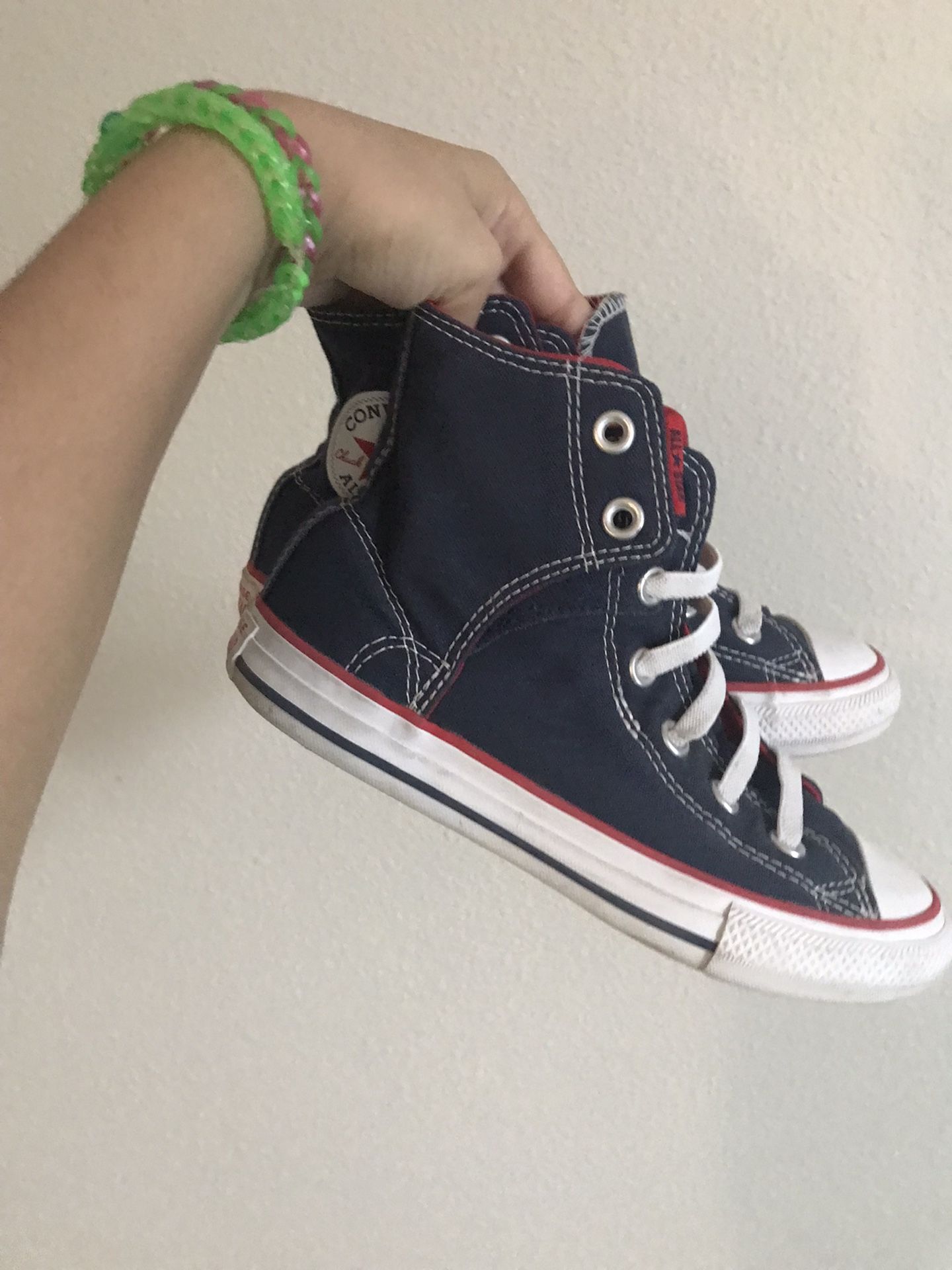 1. Converse is navy blue/red the size is 1.5 young kids and it’s a slip-on with Velcro on the back ( the blue converse is like new and barely worn.) 2. Converse is white/blue/red the size is 13 young kids and it has laces ( the white converse is in good condition and it may need a bit cleaning and will good as new.) You can buy it separately or as a bundle the blue converse is $27 and the white one is $20. If you have any questions please feel free to ask. Pick up Kent wa