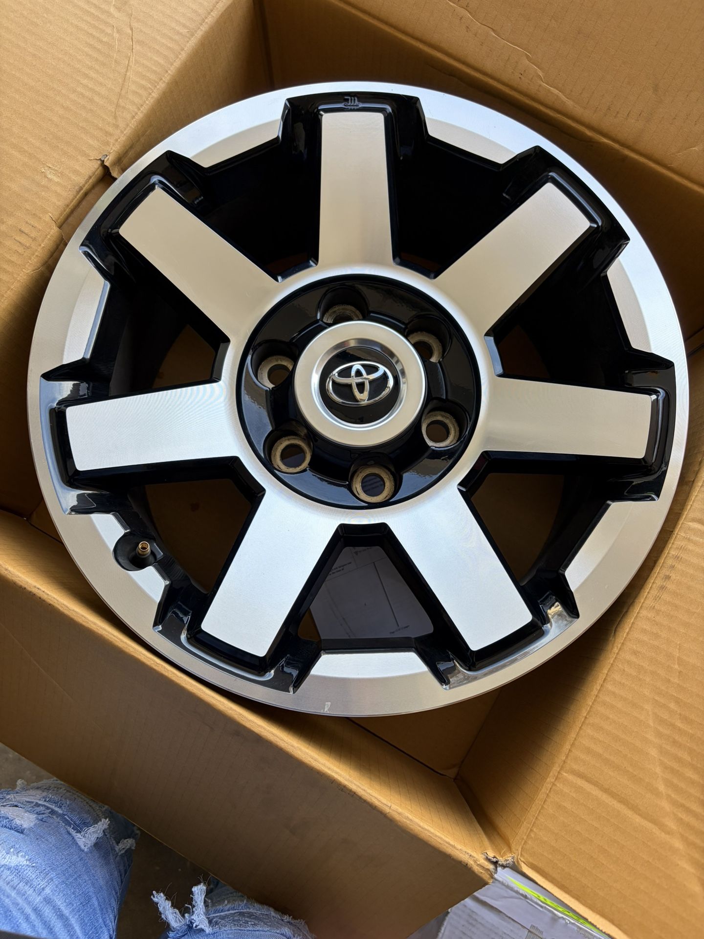 Set of 4 17” Toyota 4Runner TRD Off Road Premium Stock Wheels. There are 2 small marks on 2 of the rims, the other 2 are perfect. I upgraded my rims and tires and need to sell these. It fits 4Runner, Tacoma and FJ with a 6 bolt lug nut pattern $400 O.B.O.