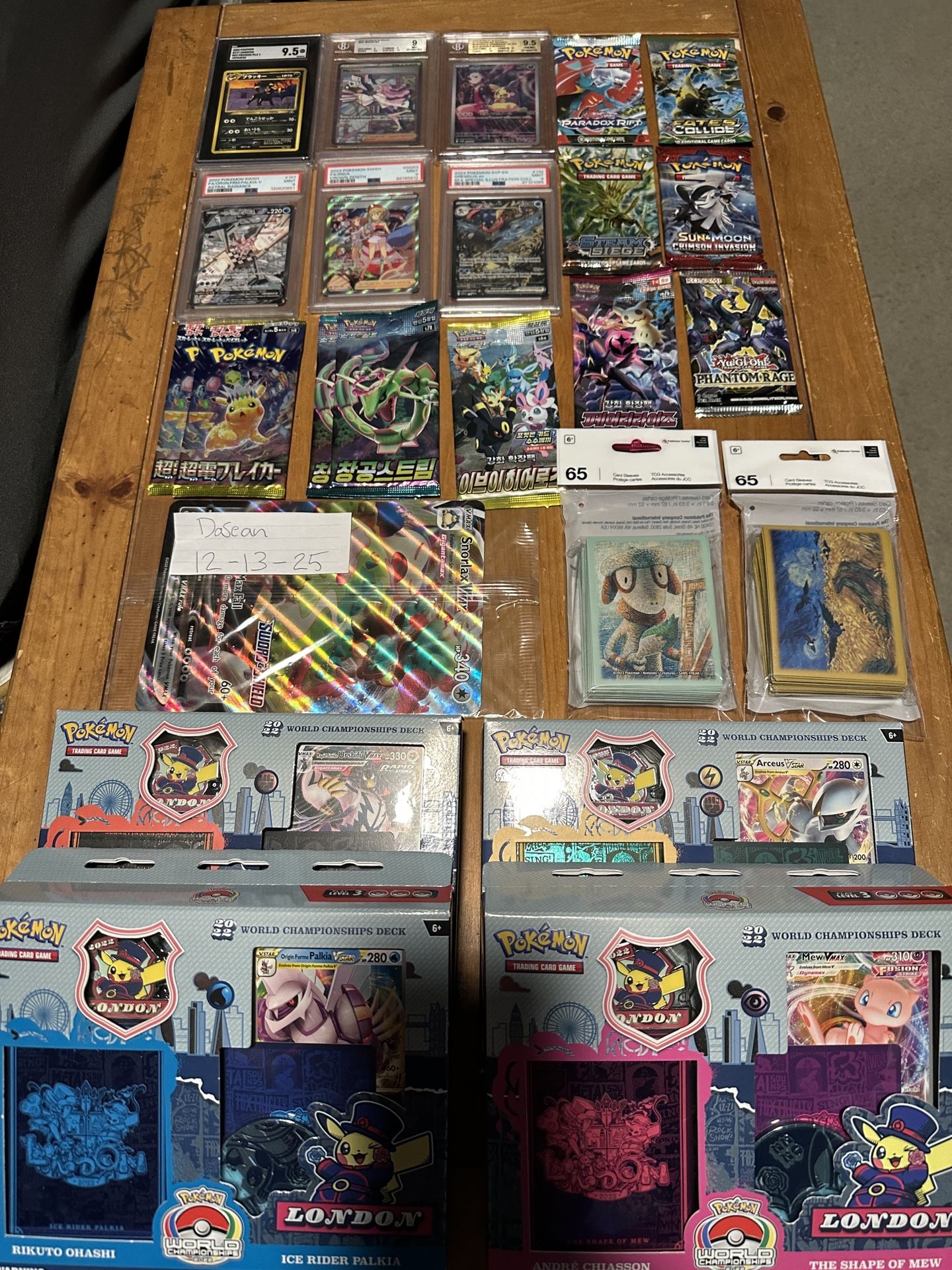 Umbreon Neo Premium Files SGC 9.5: $90 Origina Forme Palkia V: $80 Greninja ex PSA 9: $70 Marnie’s Morpeko Beckett 9.5: $55 Miriam SIR Beckett 9: $30 Irida (Full Art) PSA 9: $21 Fates Collide Booster Pack: $30 Steam Siege Booster Pack: $20 Crimson Invasion Booster Pack: $16 Paradox Rift Booster Pack: SOLD Super Electric Breaker (JP) Booster Pack: SOLD Fairy Rise (KR) Booster Pack: $15 Eevee Heroes (KR) Booster Pack: $5 Blue Sky Stream (KR) Booster Pack: $4ea. (2 available) Phantom Rage Booster Pack: $5 World Champions Decks (2022) $15 each or $50 for all four Snorlax VMax (Jumbo): $15 Smesrgle Van Gogh Sleeves: $15 Corviknight Van Gogh Sleeves: $15 More sealed Pokemon products can be found on my seller page. For singles, check out my level 4 seller TCGPlayer store: DaKingSeanpoke