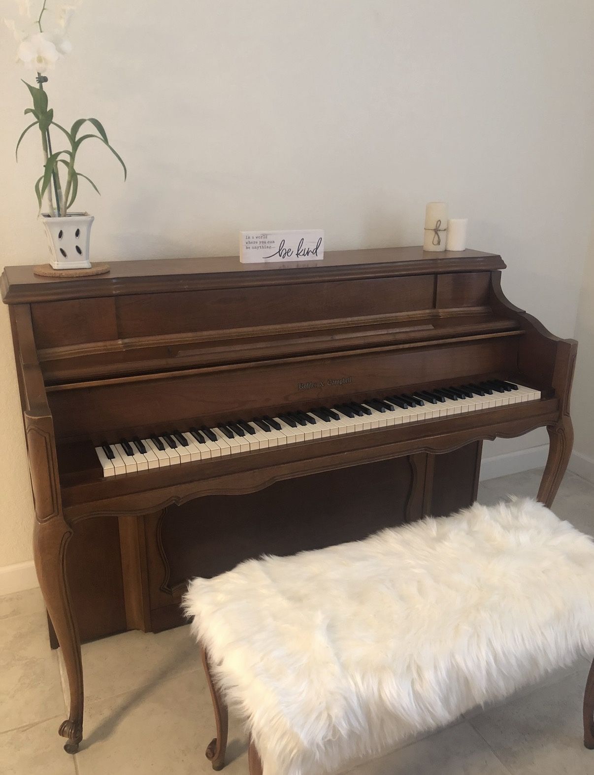 Kohler & Campbell Upright Piano recently tuned. Make: Kohler & Campbell Model: Console Finish: Satin Oak Measures: Height: 45" Width: 58" Depth: 23½" KOHLER & CAMPBELL PIANOS Founded in 1896 as a partnership between Charles Kohler and J. C. Campbell, in less than 20 years Kohler and Campbell became one of the world’s leading manufacturers of upright and grand pianos, player pianos and automatic reproducing actions.