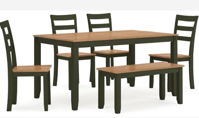 Gesthaven Natural/Green Dining Table with 4 Chairs and Bench (Set of 6)