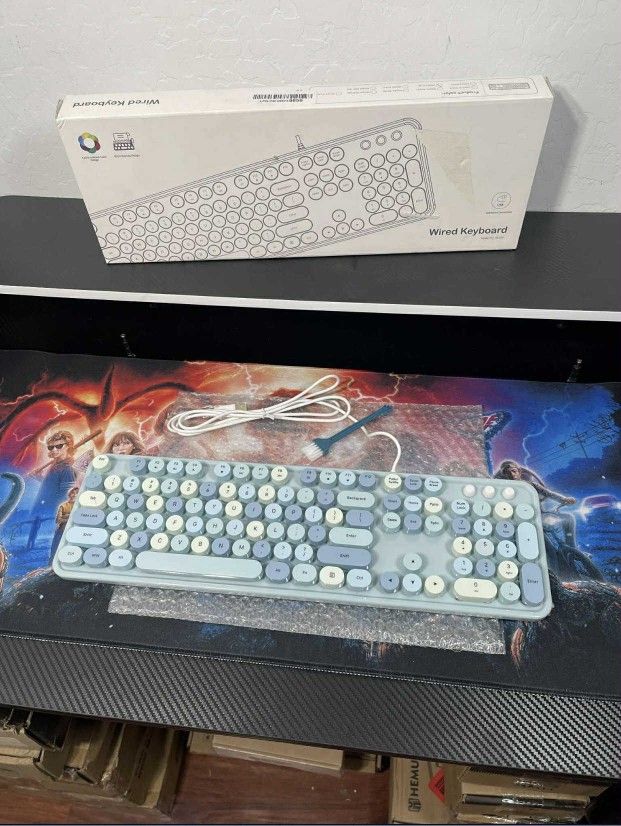 Hablo Español Brand new, opened box New MOFII Computer Keyboards Wired, Plug Play USB Full Size Typewriter Keyboard, Cute Colorful Aesthetic Keyboard W/ Foldable Stands for Windows PC Laptop (Blue Colorful) Retro Typewriter Keyboard: Experience the nostalgic charm of typewriters with the MOFII computer keyboard's retro round keycaps, while staying comfortable during long sessions thanks to its ergonomic foldable stand and anti-slip pads. Maximize Productivity: Upgrade your computer usage with a spacious number pad, 3 indicator lights, and 12 multimedia shortcuts. Effortlessly control video playback, adjust volume, browse the web, and manage emails for enhanced efficiency. Widely Compatibility: Work fluidly on Windows 7/8/10/11/XP/Vista/Server/Chrome OS/Mac OS/Linux/TV. Suitable for Desktops, Chromebook, PC, Laptop, Computer, and more. Easy to Use and Cleaning: Plug and play, wired keyboard works with any USB devices, no driver needed, no need to worry about interference that breaks your connection, no charging or battery consumption. Additionally equipped with a dust brush, making keyboard cleaning effortless Original price: $29.99 plus tax Our price: $15 no tax First come first served please Located on S 70th Ave and W Lower Buckeye Rd, in Phoenix Check out more brand new discounted items in my offers